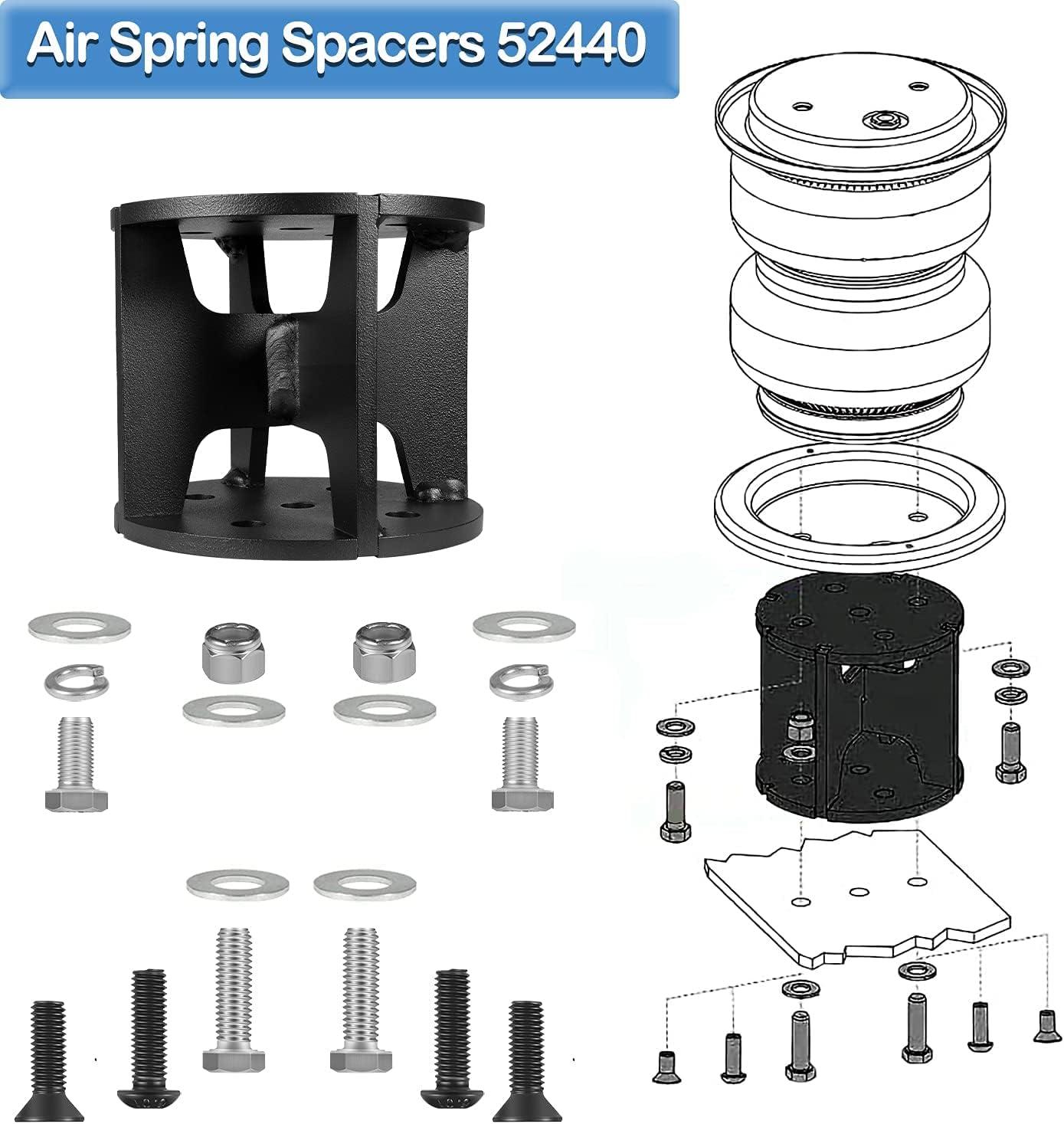 With a unique spinal design, Air spring spacers are designed to be compatible with most air spring applications , Universal Air Spring Spacers allow you to add an air spring kit to your lifted truck and restore the towing and hauling capabilities you once had. The spacer attaches between the lower air spring bracket and the air spring to provide better control and handling of your vehicle and reduce squatting, trailer sway and bottoming out