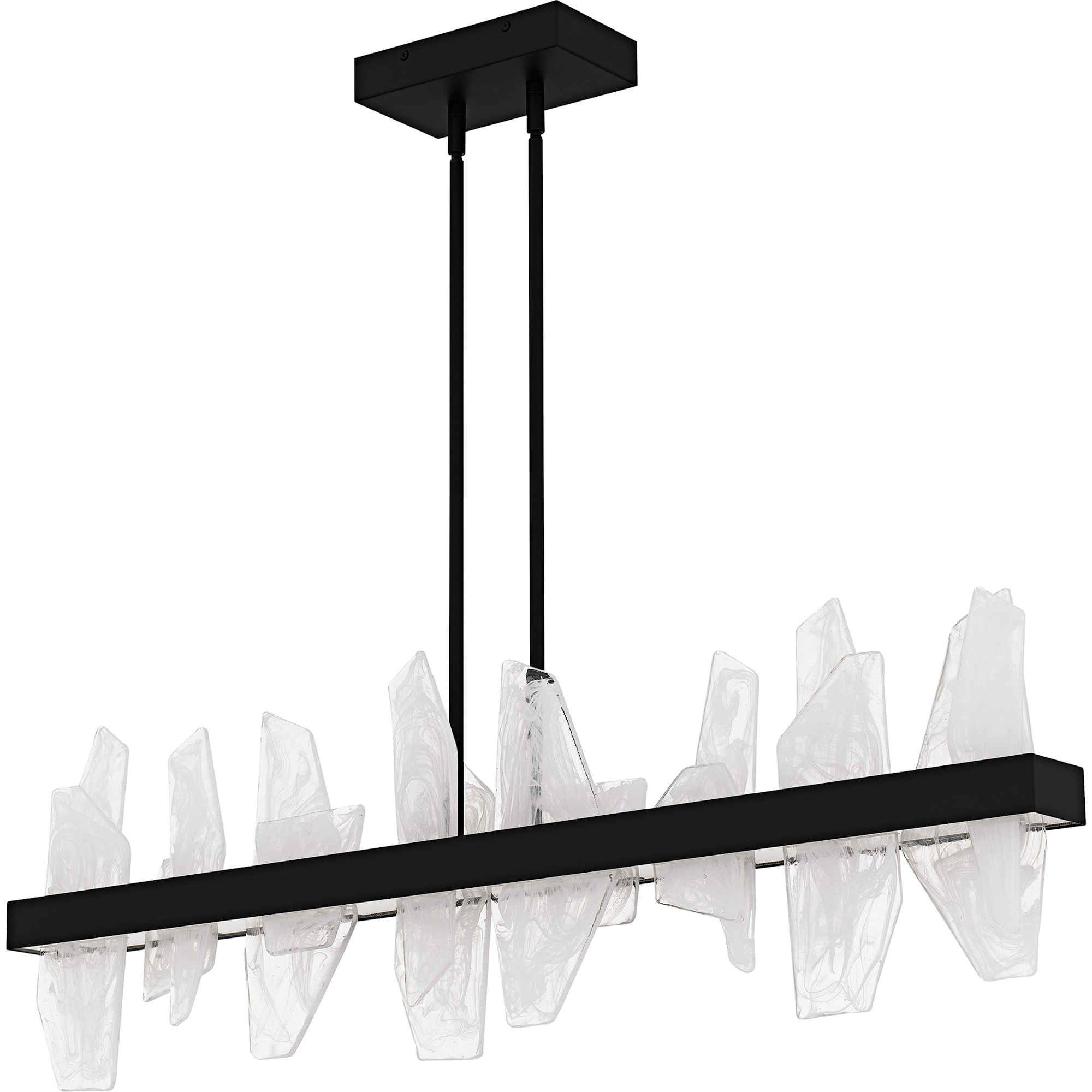 - Fixture includes (4) 12" and (4) 6" downrods