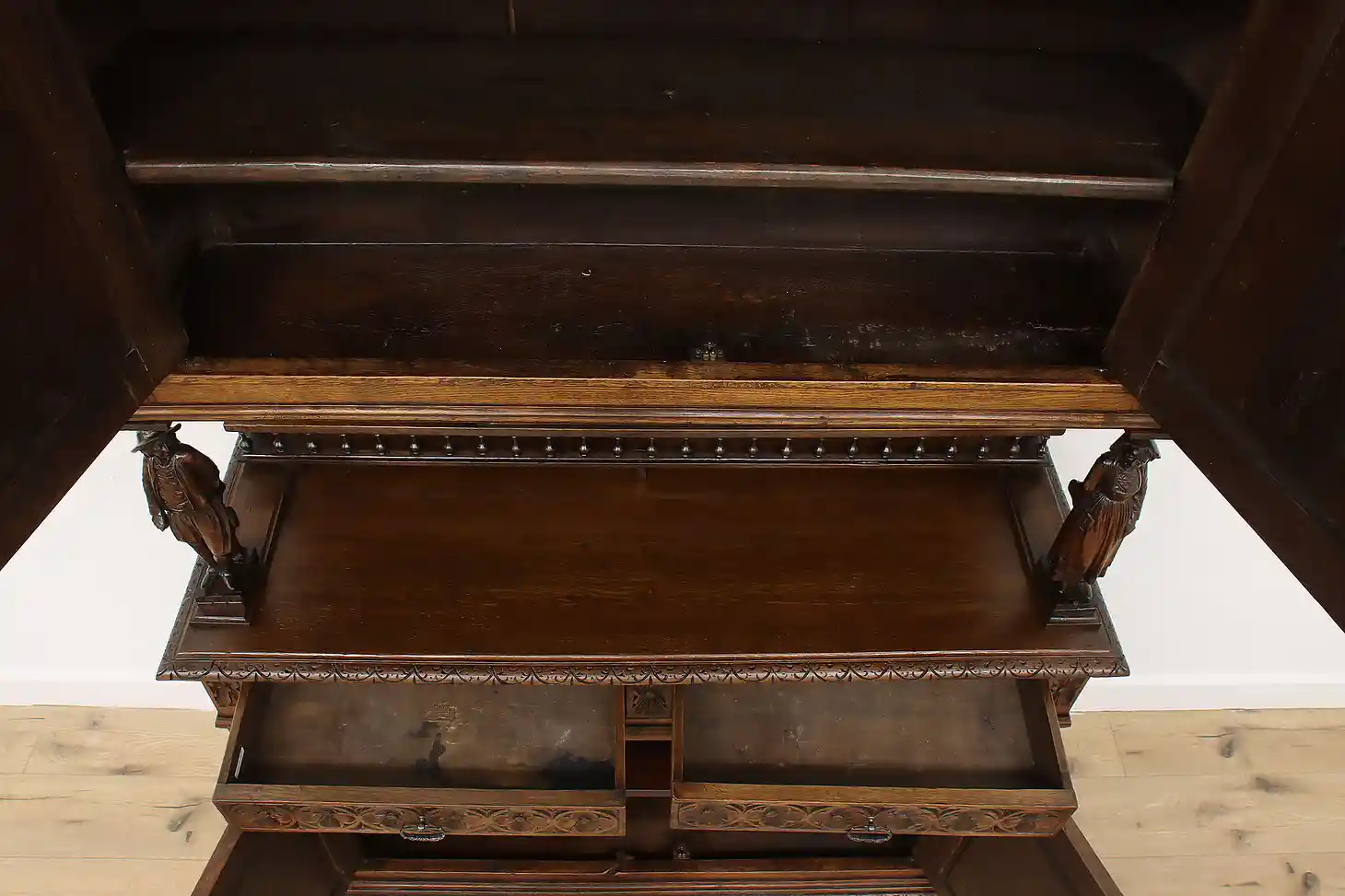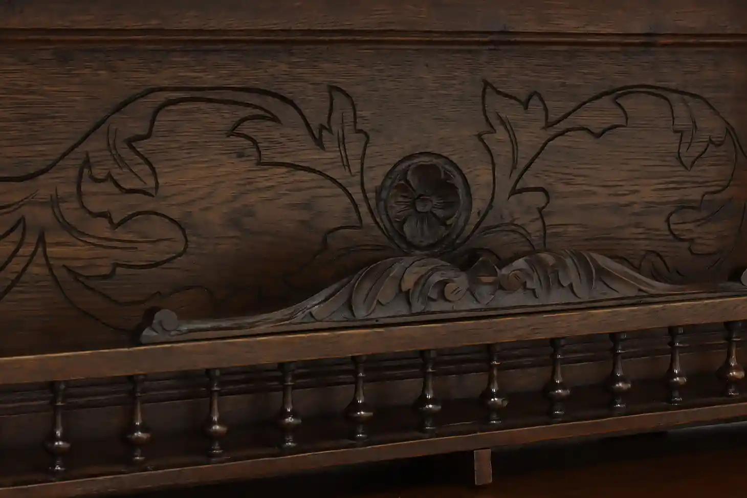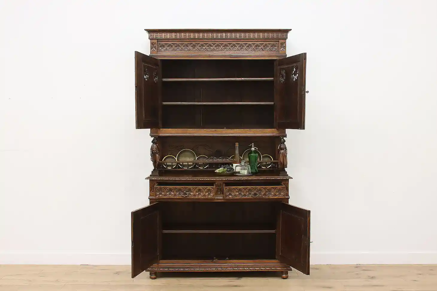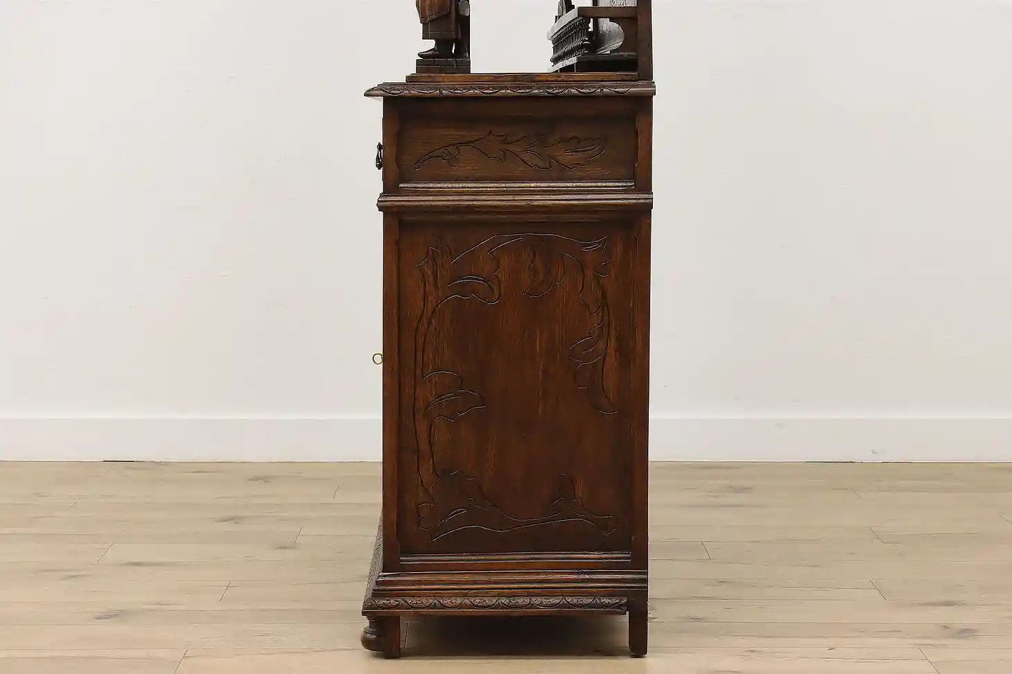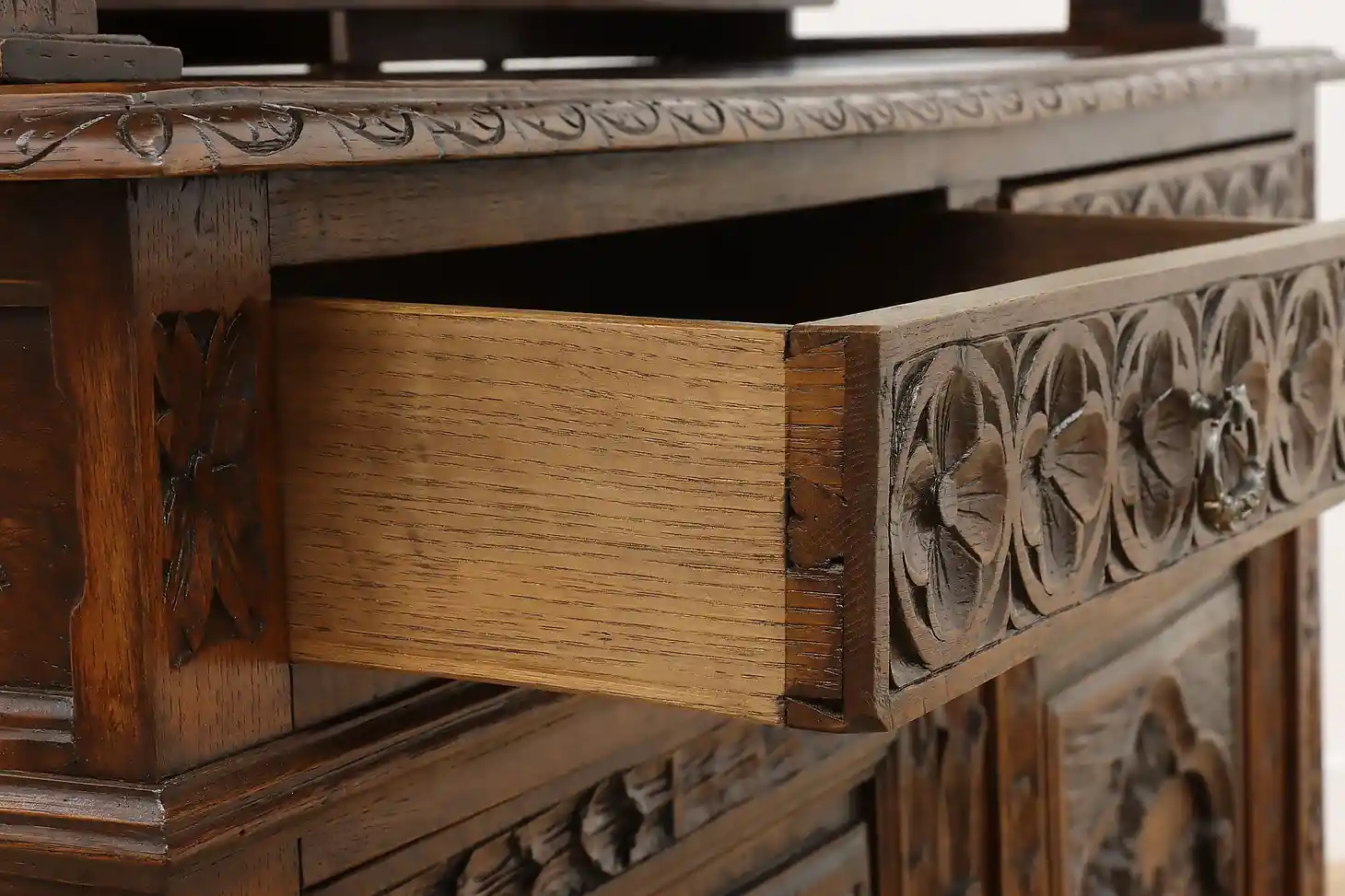 The northwest region of France is home to the Brittany province, famous for its highly-skilled artisans. This sideboard, cupboard or bar shows of the masterful skills of its crafters, displaying scenes of traditional village life.