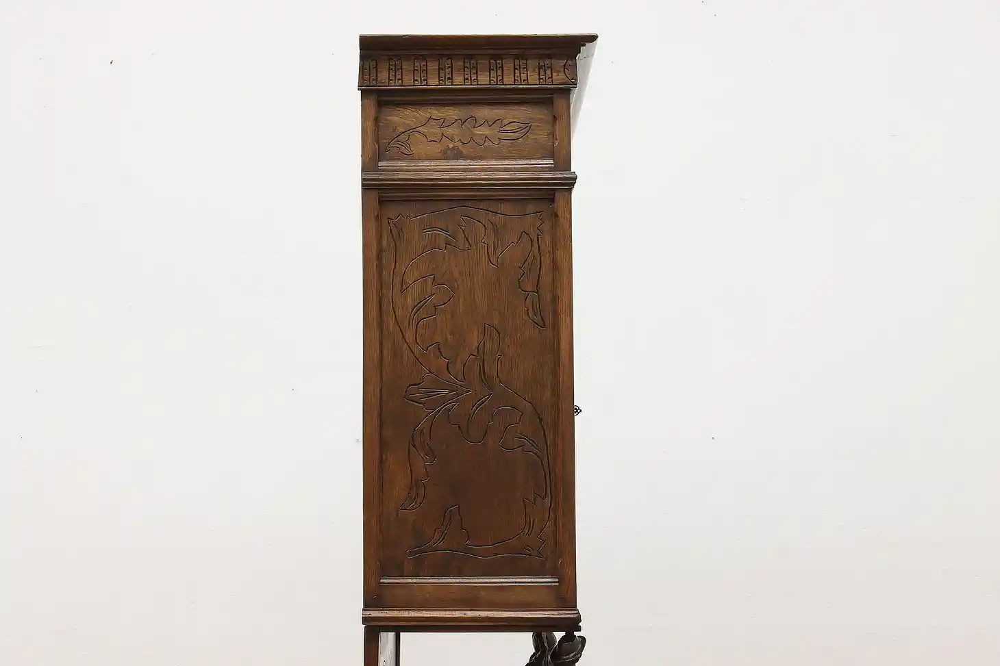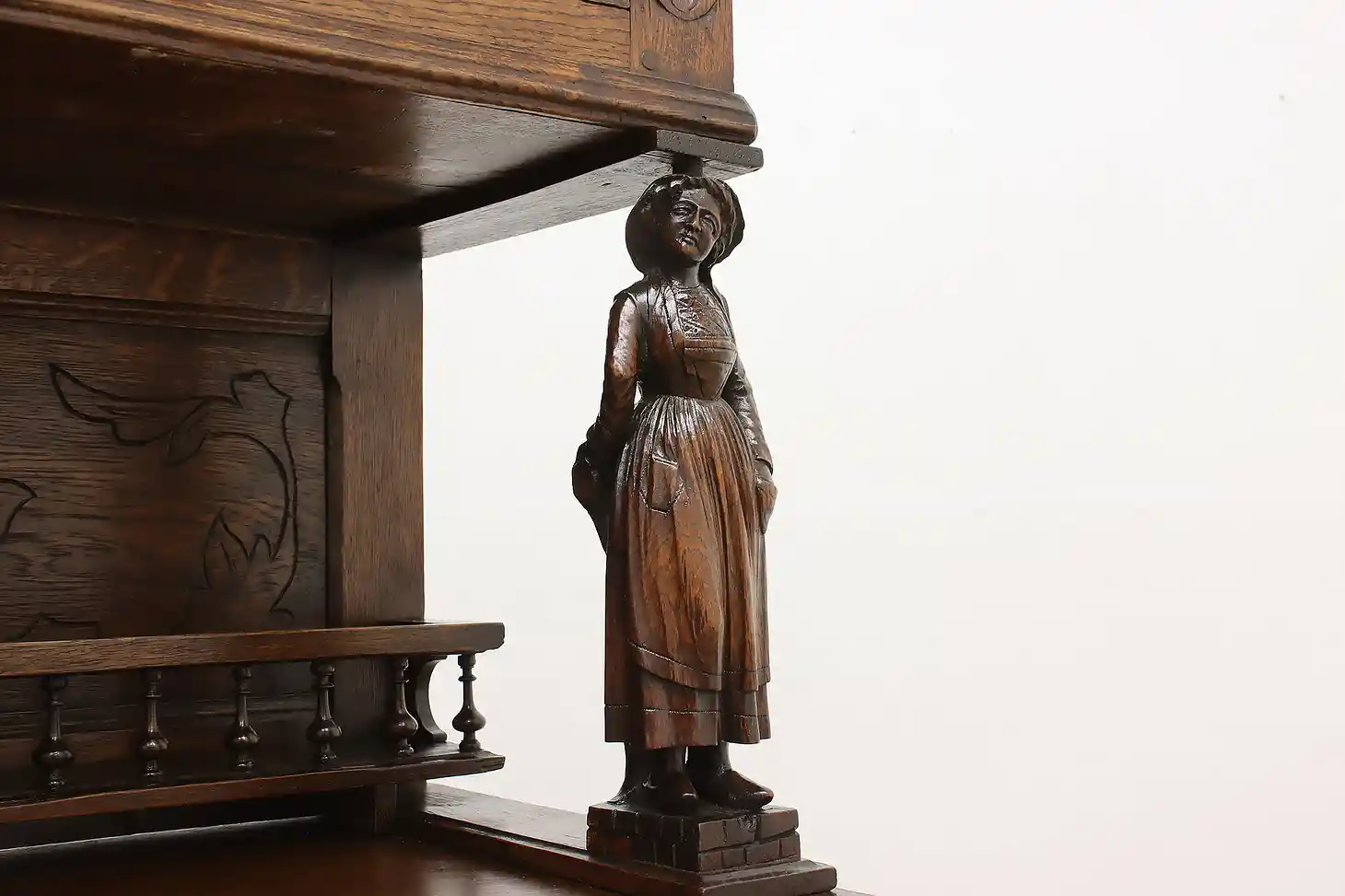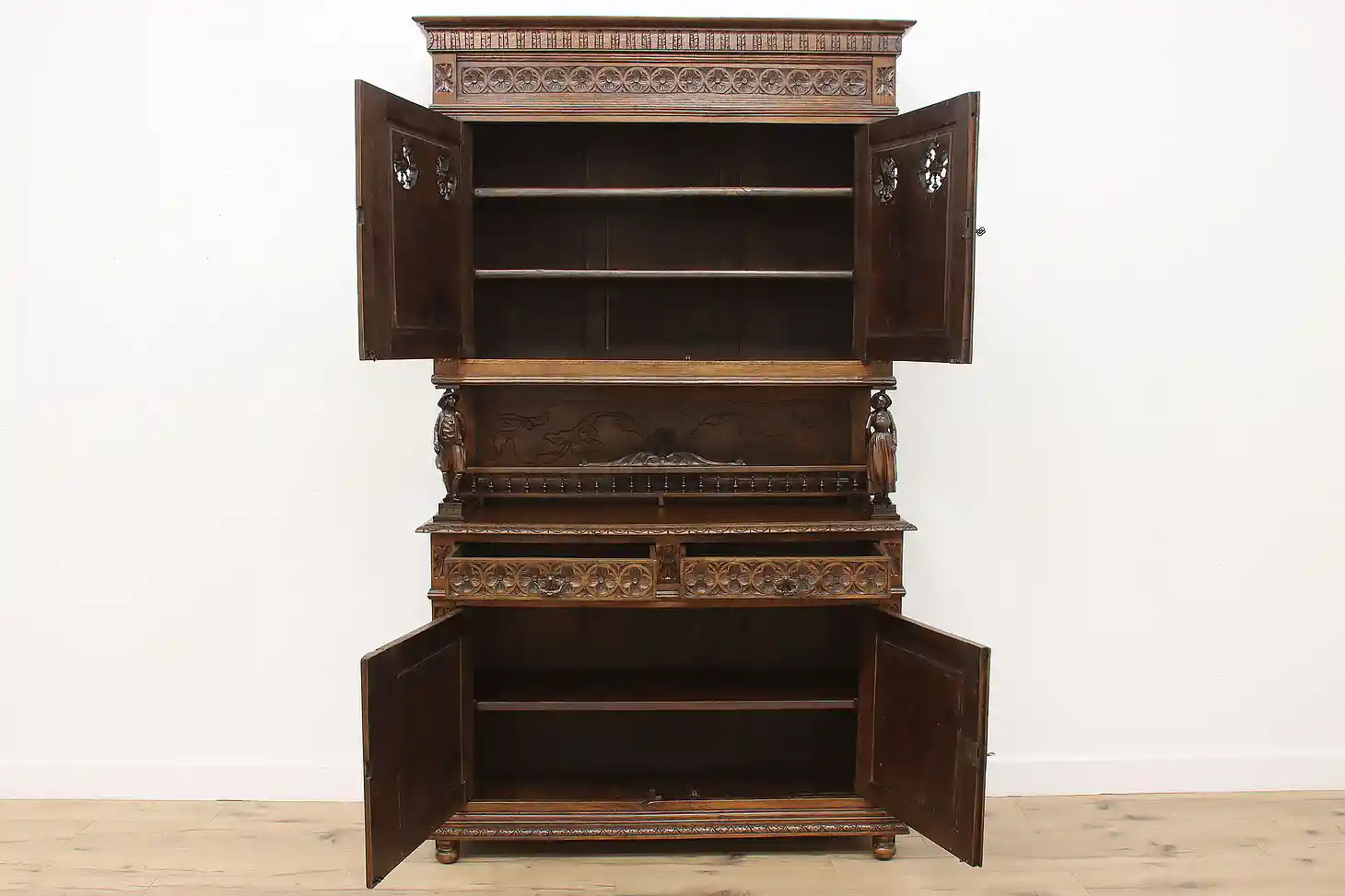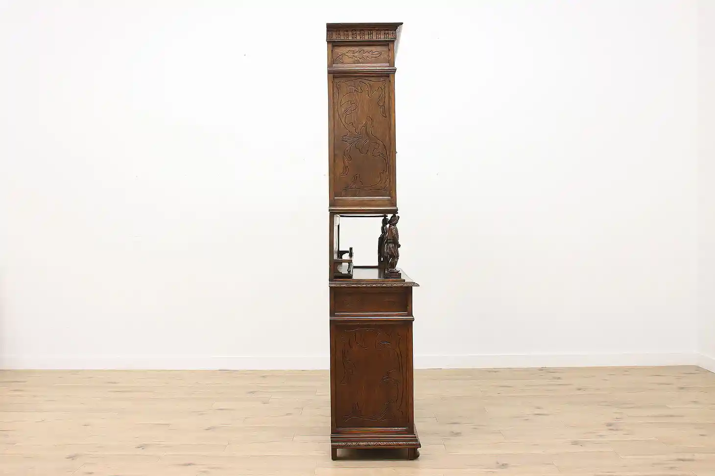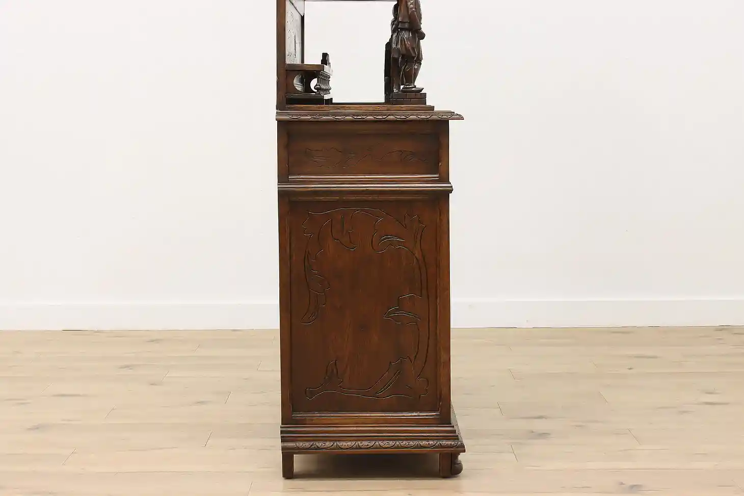The northwest region of France is home to the Brittany province, famous for its highly-skilled artisans. This sideboard, cupboard or bar shows of the masterful skills of its crafters, displaying scenes of traditional village life.