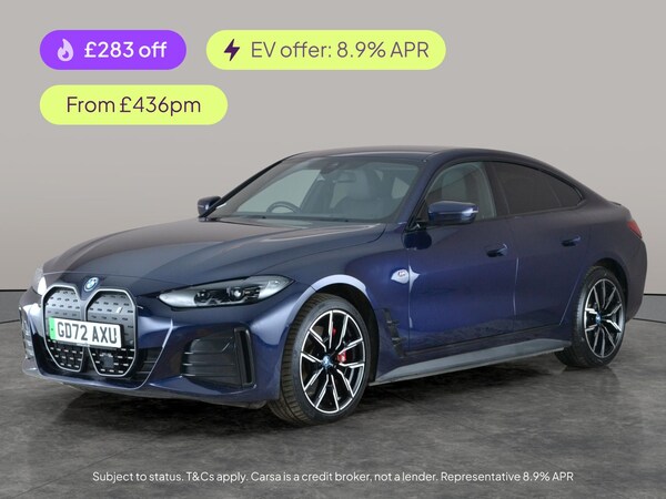 Step into style with this blue BMW i4 Gran Coupe, boasting the impressive M Sport Pro Package and striking 19in M Light Y-Spoke alloy wheels. Enjoy the immersive Harman/Kardon sound system, Tech Pack, and wireless phone charging. Drive with confidence thanks to adaptive cruise control, park assist, a reversing camera, and brilliant LED headlights. Inside, relax in luxurious Vernasca leather heated seats and stay connected with BMWs Connected Package Professional and satellite navigation. 2 services recorded, last serviced on 24/01/2026 at 46,645 miles. MOT to 30/01/2027. Visit our website for service history, online valuation, full vehicle specification plus multiple images. Certain features listed may be available via subscription packages at extra costs, please consult with BMW for details. This vehicle is VAT qualifying. Any feature/option specified here is from 3rd party data. We cannot guarantee the accuracy of any specification supplied by a 3rd party. We recommend that you physically check the specification of the vehicle on site prior to purchase. This information does not form part of the buying contract. Terms & Conditions apply. We have over 2,000 cars available from our 10 national branches, check our website to see all our stock. Our Trustpilot rating is 4.4/5 with over 9,000 reviews.