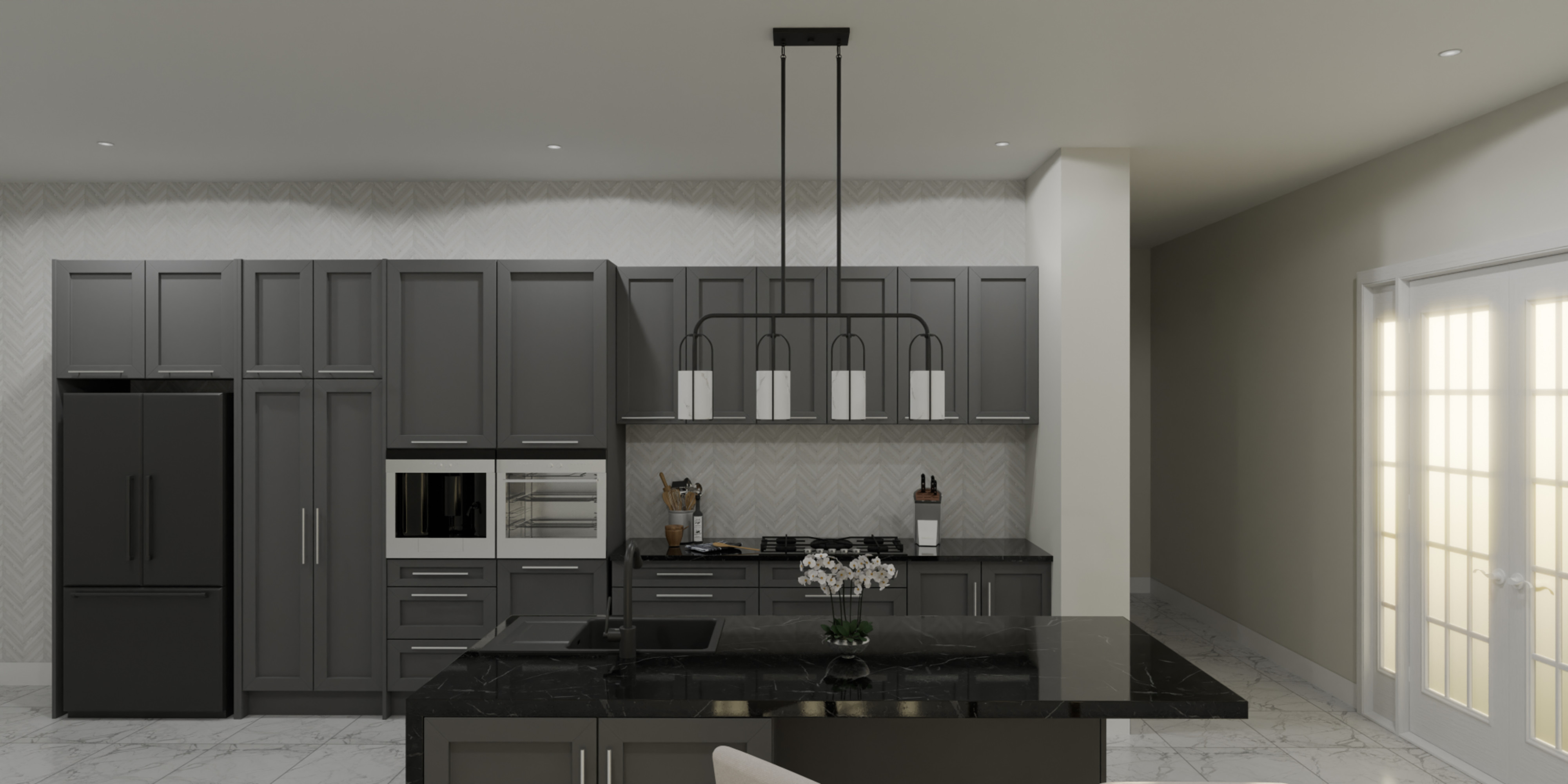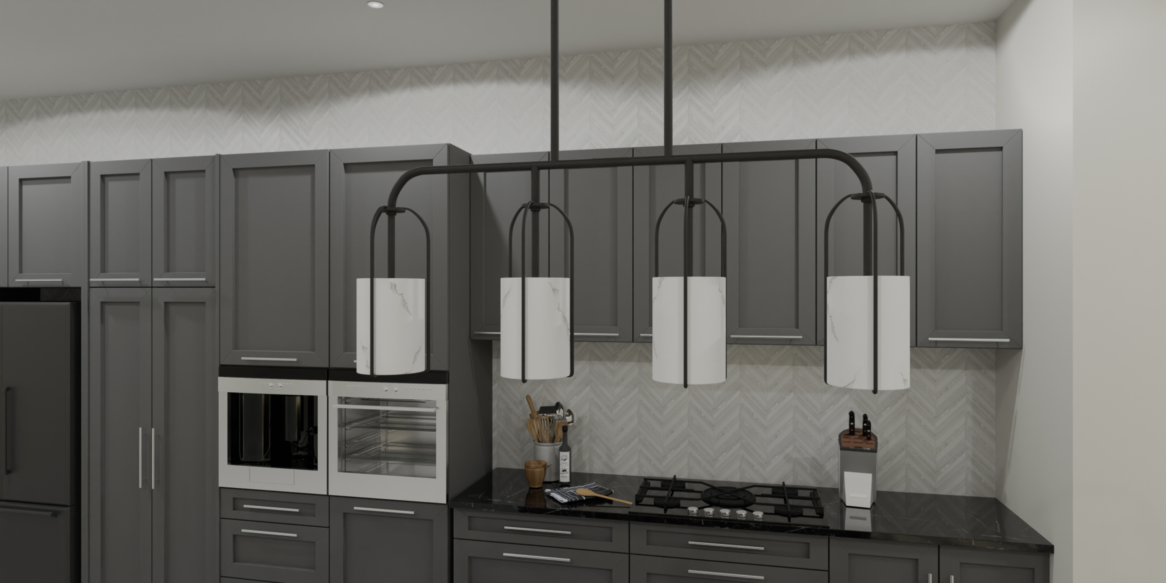 Item DescriptionMetal and faux marble make a perfect pairing in the Fairbanks collection. Slender lines delicately frame the white alabaster glass shades, adding a hint of luxury to the transitional design. Fairbanks is a versatile collection - available as a mini pendant light, linear island light, or wall sconce.