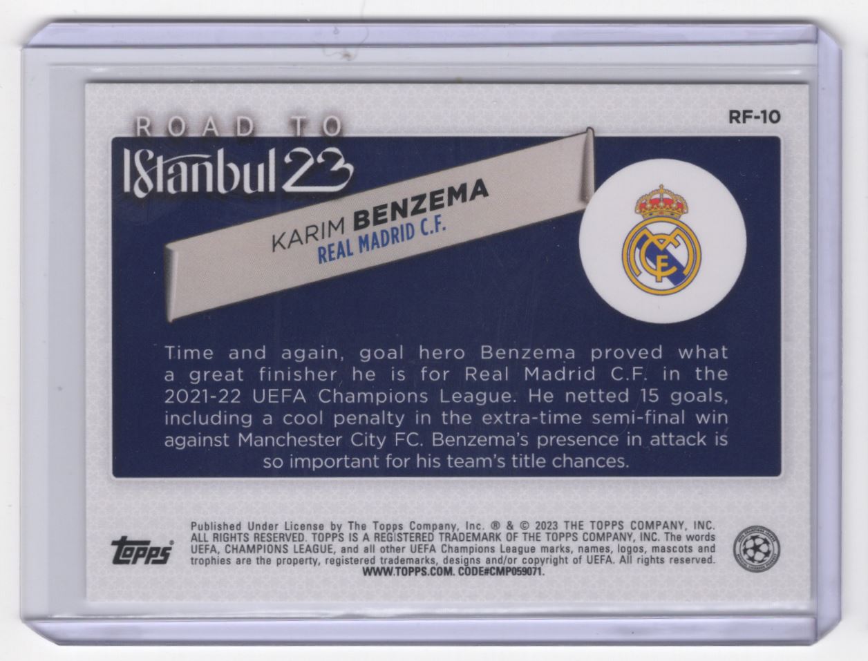 | 2022 Topps UEFA Club Competitions Road to the Final Karim Benzema Real Madrid CF | ||||||||||||||||