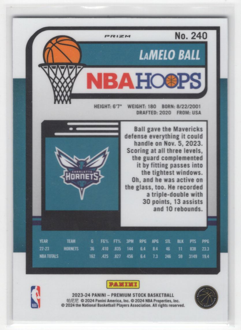 #240 LaMelo Ball 2023-24 Premium Stock Silver Prizm Charlotte Hornets