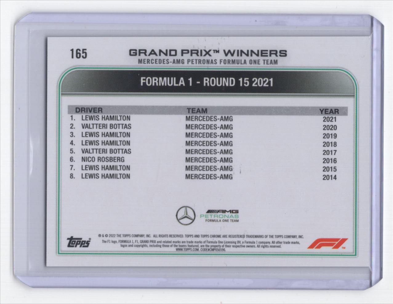 2022 Topps Chrome Formula 1 Lewis Hamilton Mercedes-AMG Petronas F1 #165