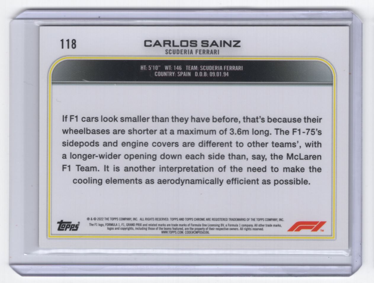 2022 Topps Chrome Formula 1 Carlos Sainz Scuderia Ferrari #118