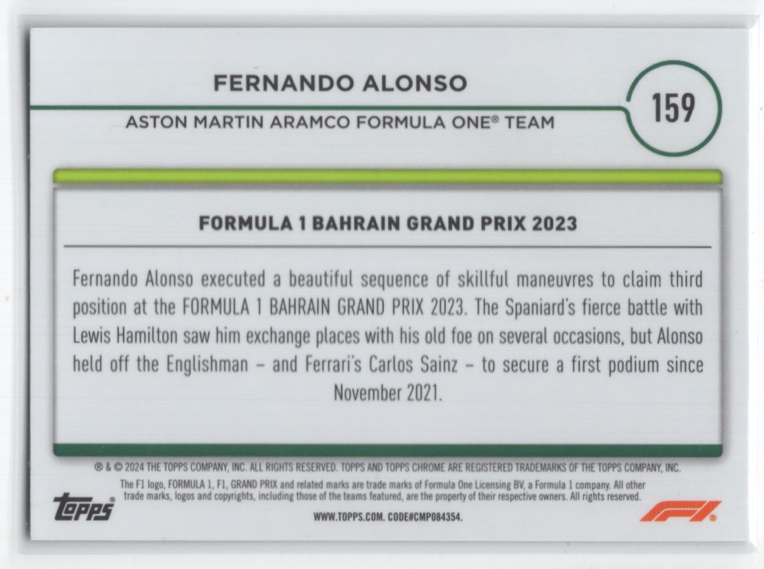 #159 2024 Topps Chrome F1 Fernando Alonso