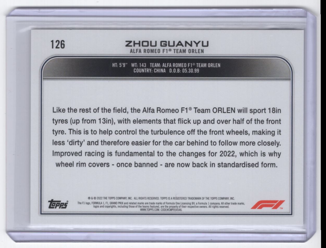 2022 Topps Formula 1 Zhou Guanyu Alfa Romeo Racing Orlen #126