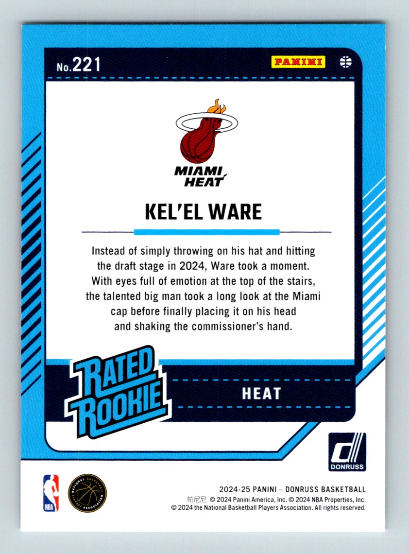 #221 Kel'el Ware 2024-25 Donruss Rated Rookie Base <> RC Heat