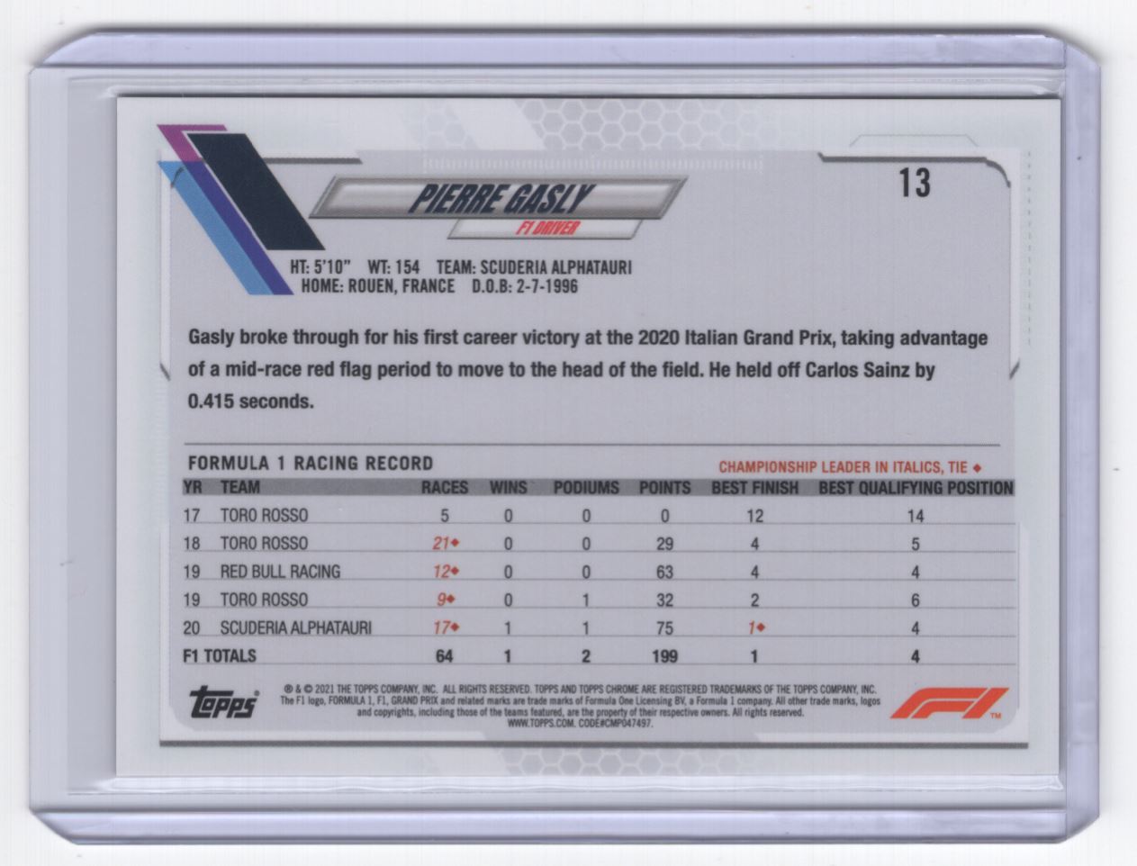 2021 Topps Chrome Formula 1 Pierre Gasly Scuderia AlphaTauri #13