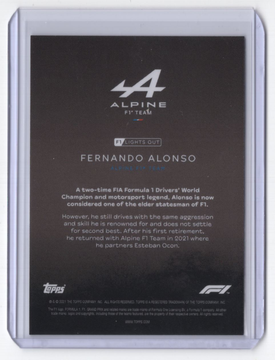 2021 Topps Formula 1 Lights Out Fernando Alonso Alpine F1 Team
