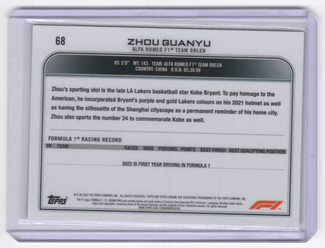 2022 / Zhou Guanyu Rookie Alfa Romeo Racing Orlen #68