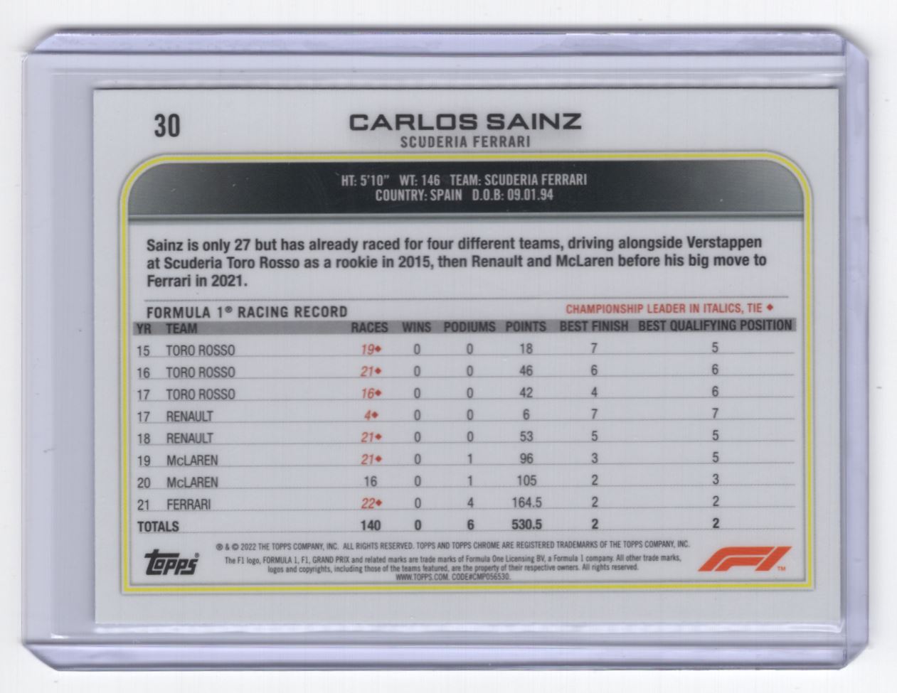 2022 Topps Chrome Formula 1 Sapphire - Carlos Sainz Scuderia Ferrari #30