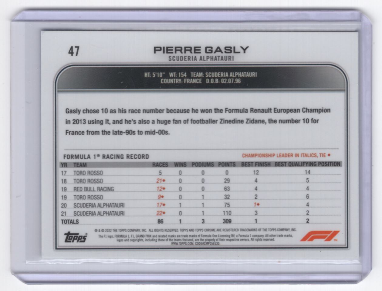 2022 Topps Chrome Formula 1 Sapphire *** Pierre Gasly Scuderia AlphaTauri #47
