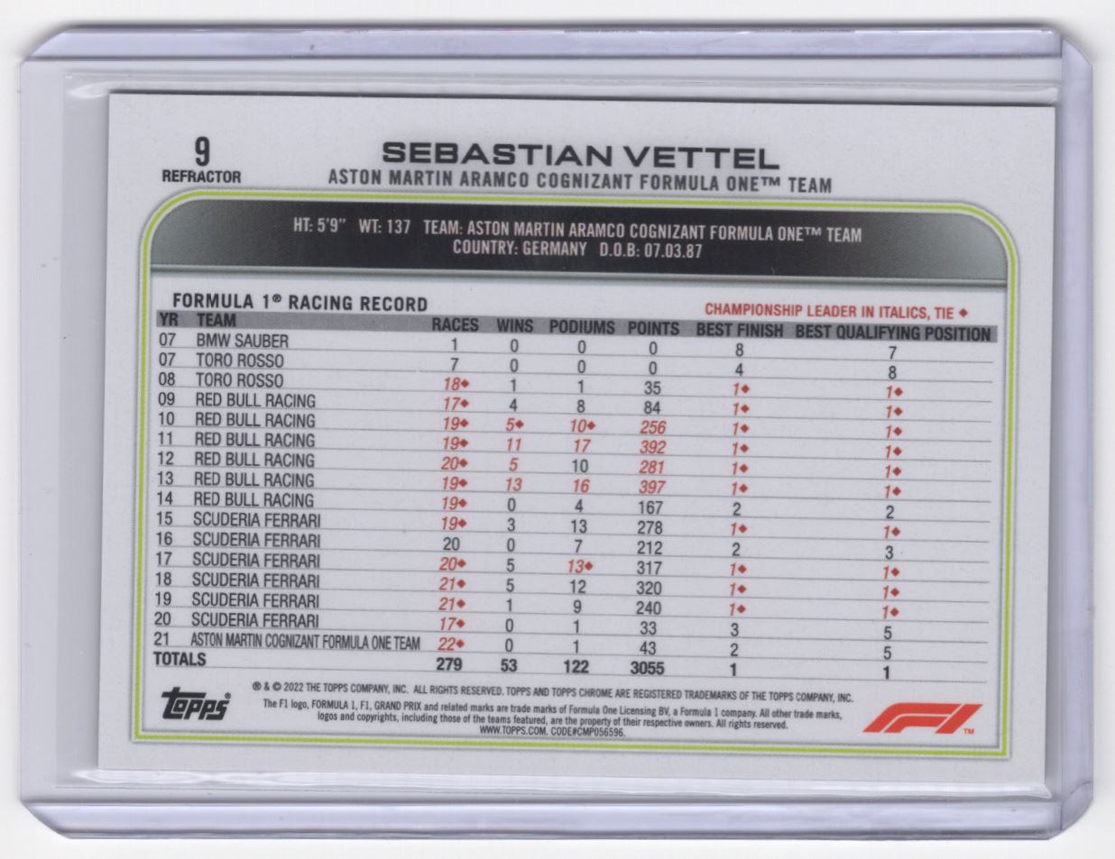 | 2022 Refractor Sebastian Vettel Aston Martin Cognizant F1 #9 | ||||||||||||||||||