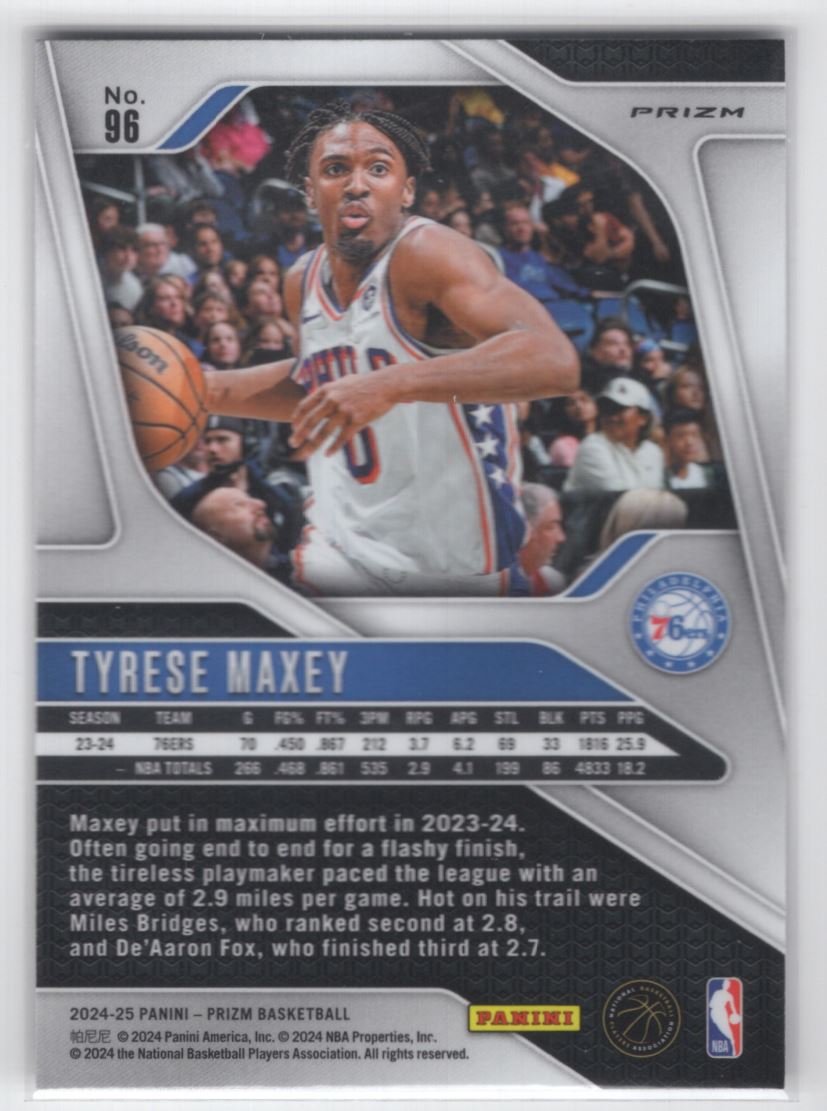 #96 2024-25 Panini Prizm Silver Tyrese Maxey Philadelphia 76ers