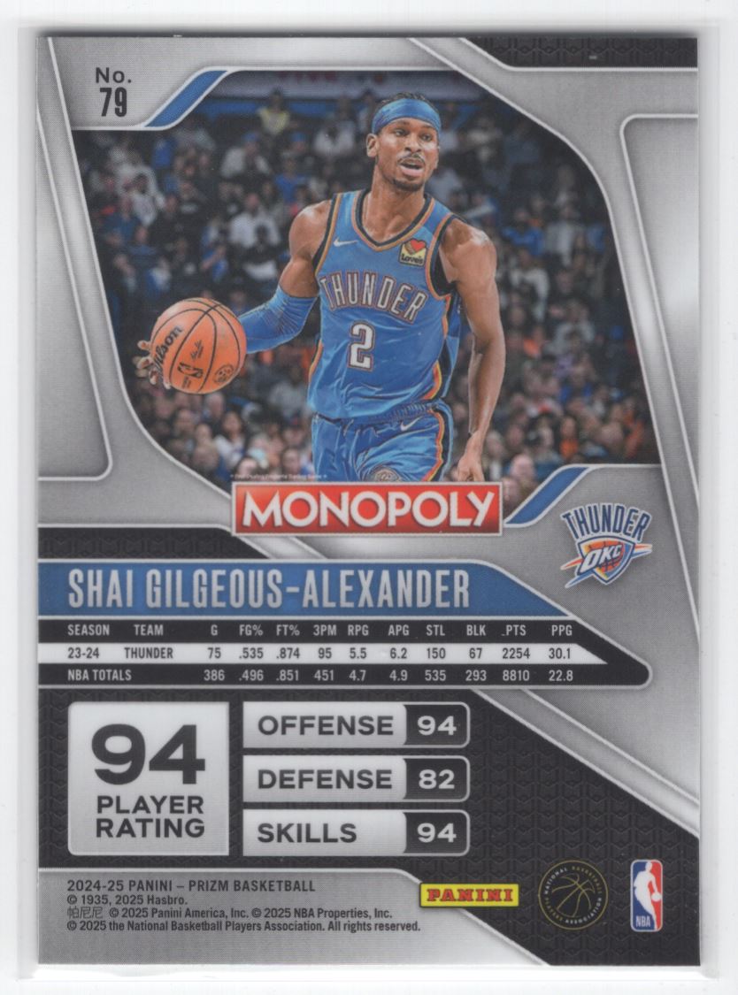 #79 2024-25 Prizm Monopoly BASE | Shai Gilgeous-Alexander Oklahoma City Thunder