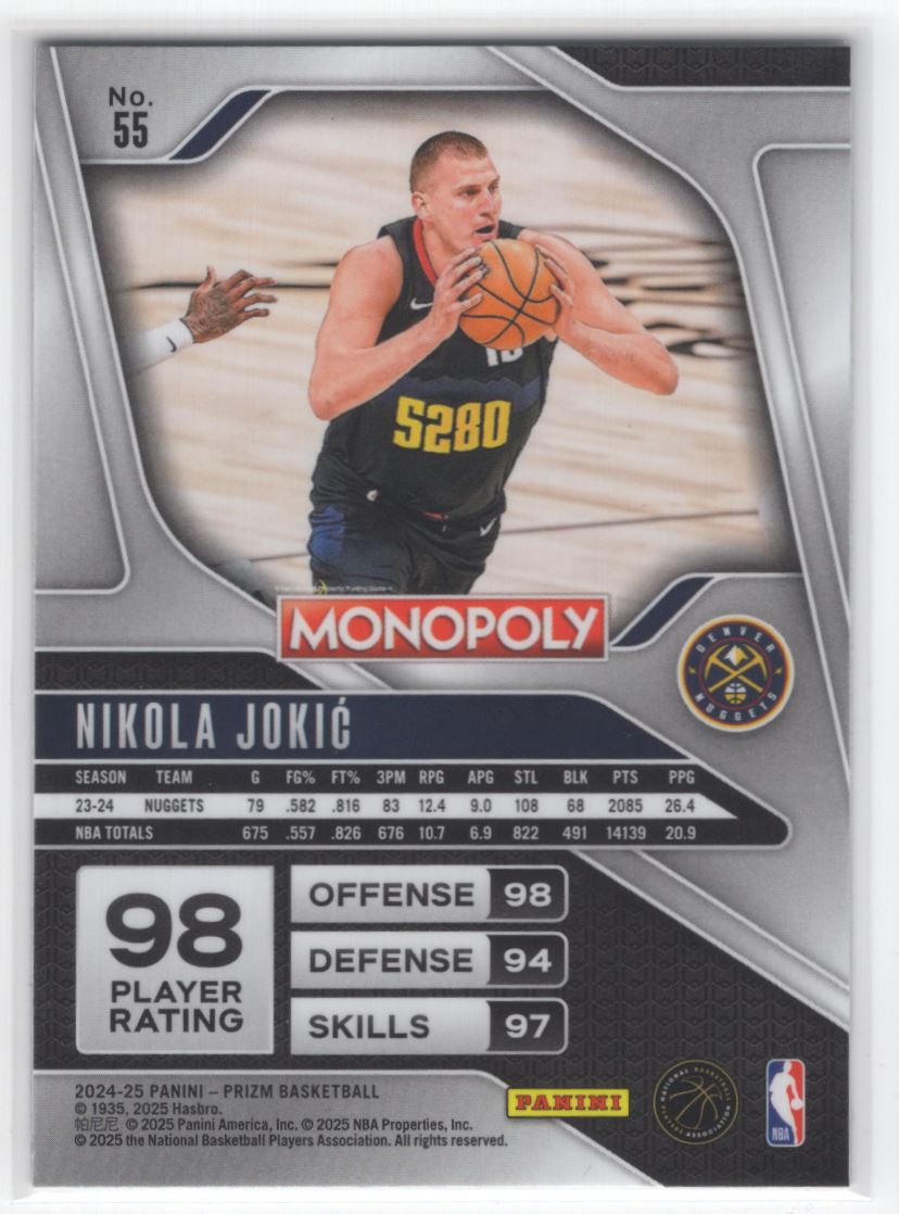 #55 2024-25 Prizm Monopoly BASE * Nikola Jokic Denver Nuggets