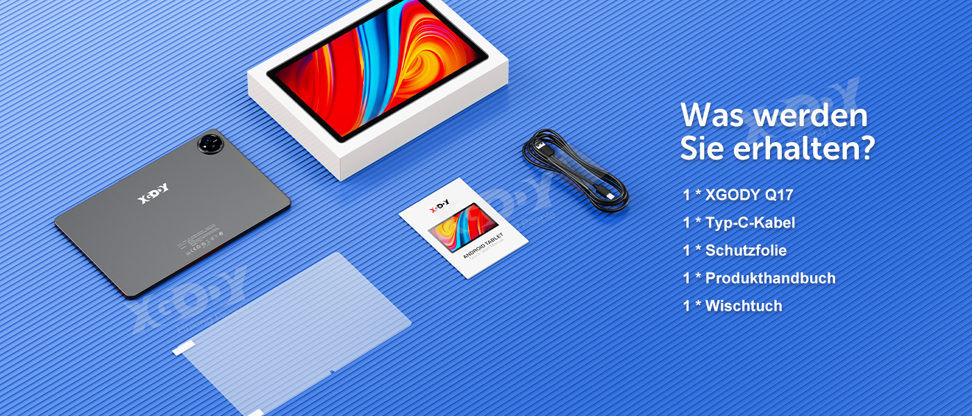 Antwort:Tab Q17 Tablet-Computer*1, Folie*1, Typ-C-Datenkabel*1, OTG-Datenkabel*1, Benutzerhandbuch*1, Verpackungsbox*1,Ladekopf*1.
