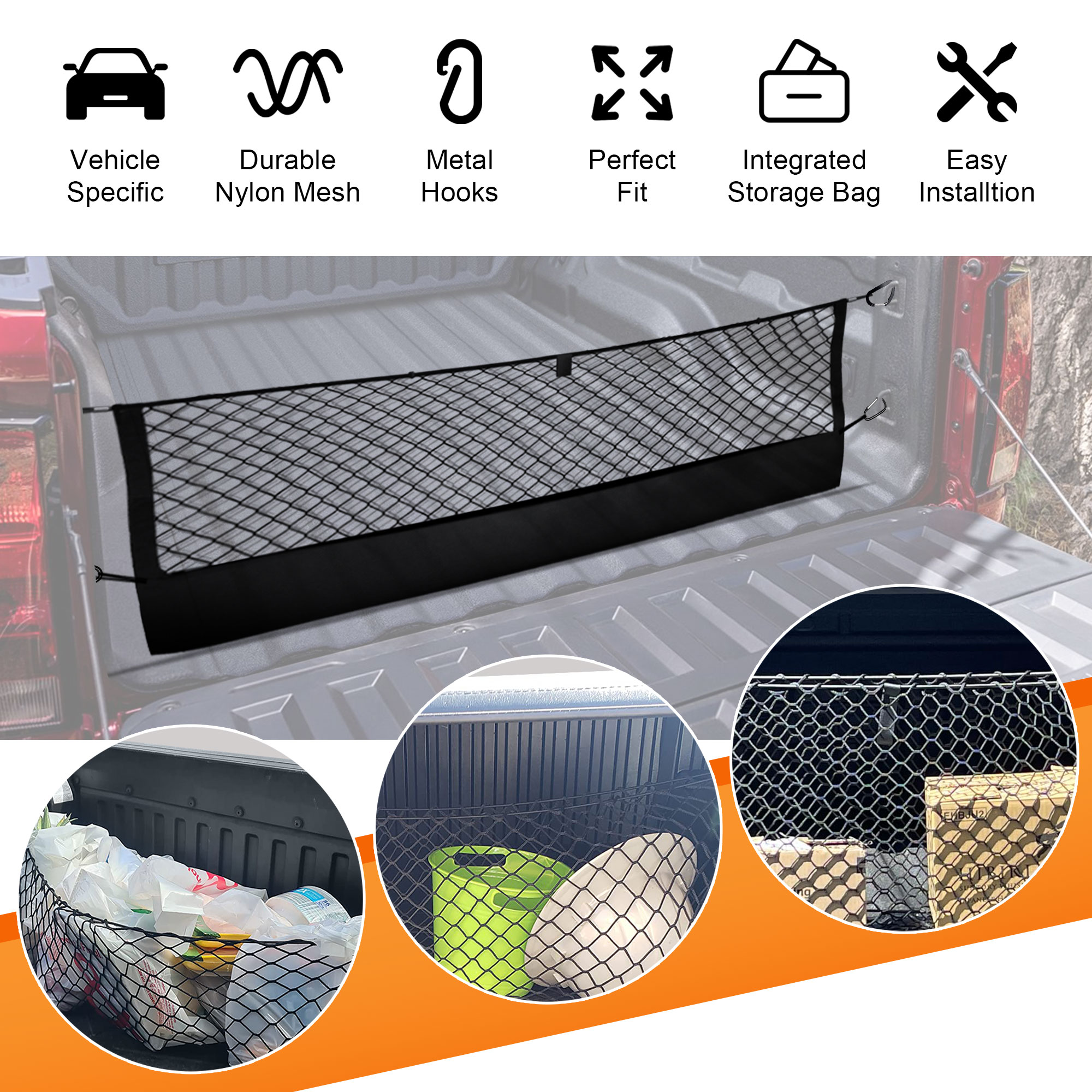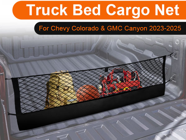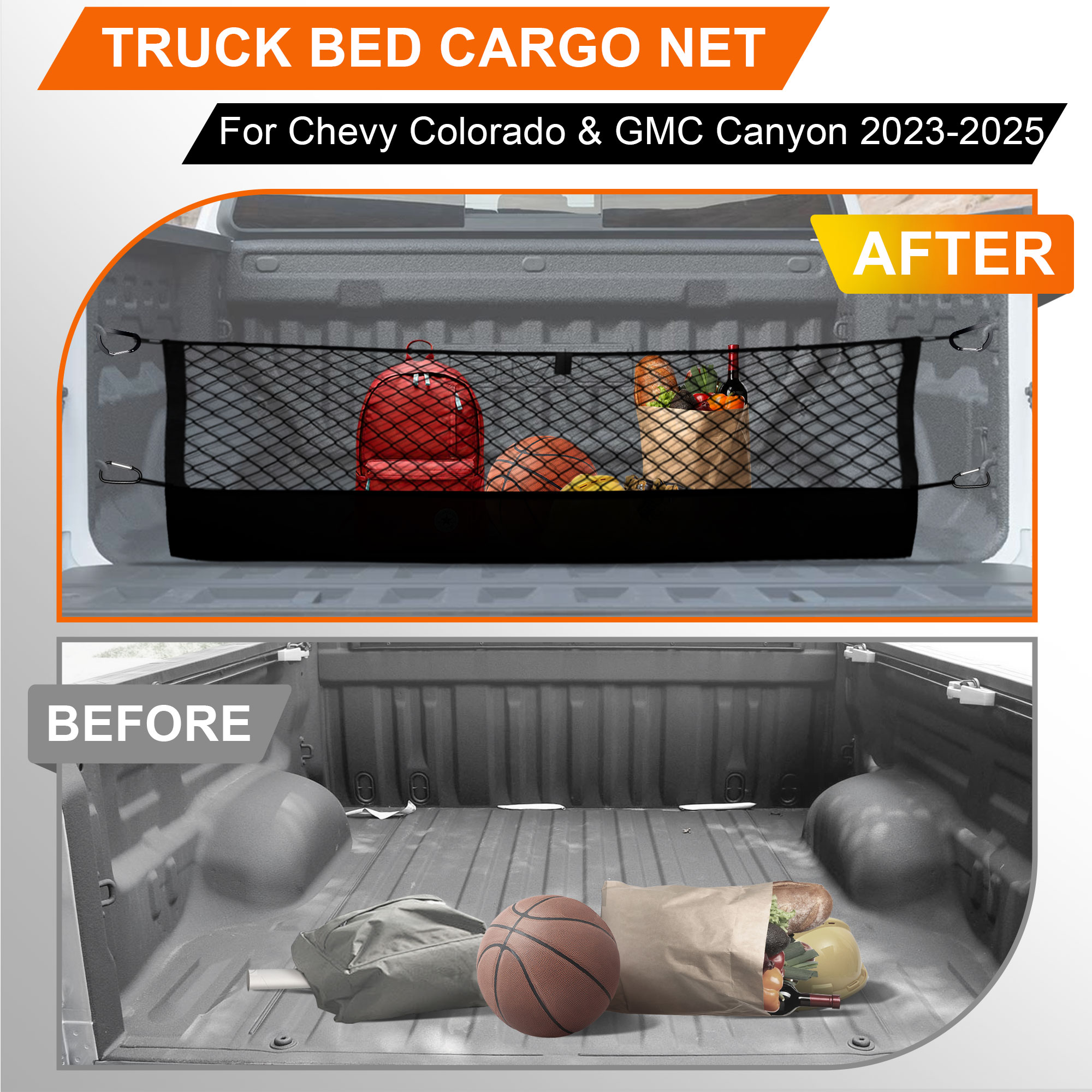 Designed for Chevrolet Colorado, GMC Canyon, and Ford Ranger models. Features an elastic mesh net that securely holds cargo of various shapes and sizes in your truck bed.