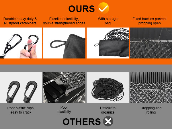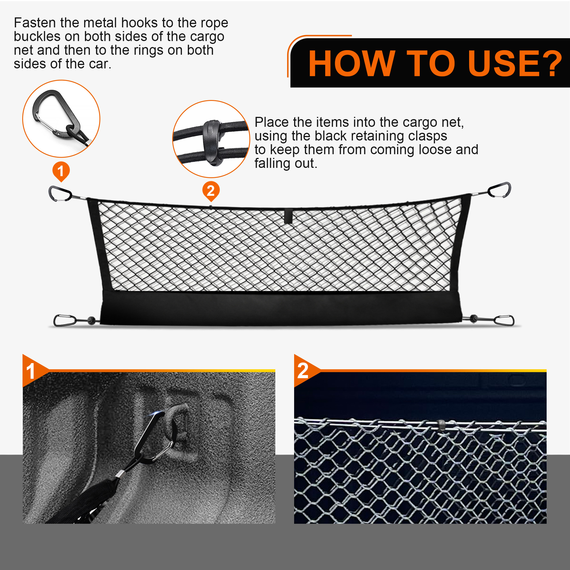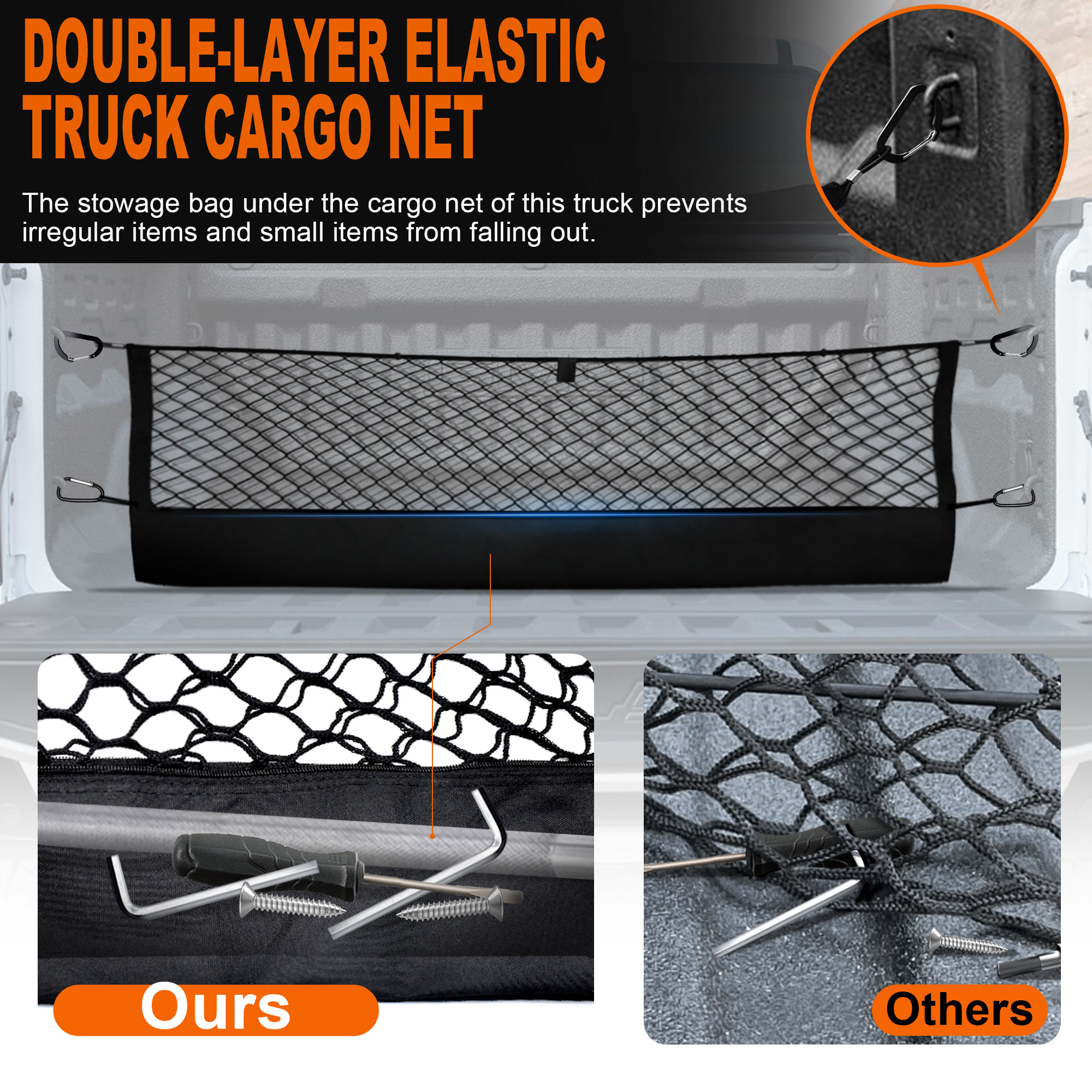 Doubles your storage capacity with a two-layer stretchable mesh—perfect for organizing groceries, tools, or travel gear and preventing items from shifting or falling.