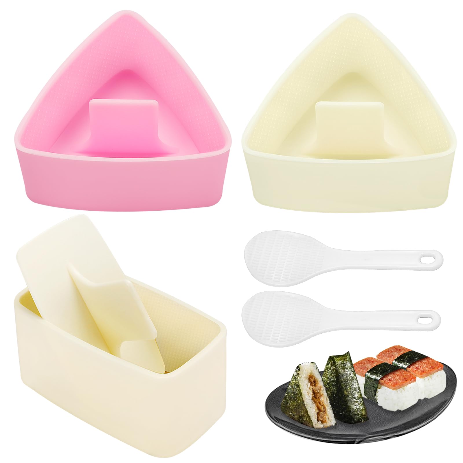 【Sushi Making Kit】Contains 1 pc musubi maker and 2 pcs triangle onigiri mold (pink & beige) with 2 pcs small rice paddle, which are made of thick, highly durable food grade plastic materials. Bring you a good kitchen tool to make your DIY rice ball and musubi sushi. Share the kinds of japanese rice sushi with your family and friends, kids especially like it.