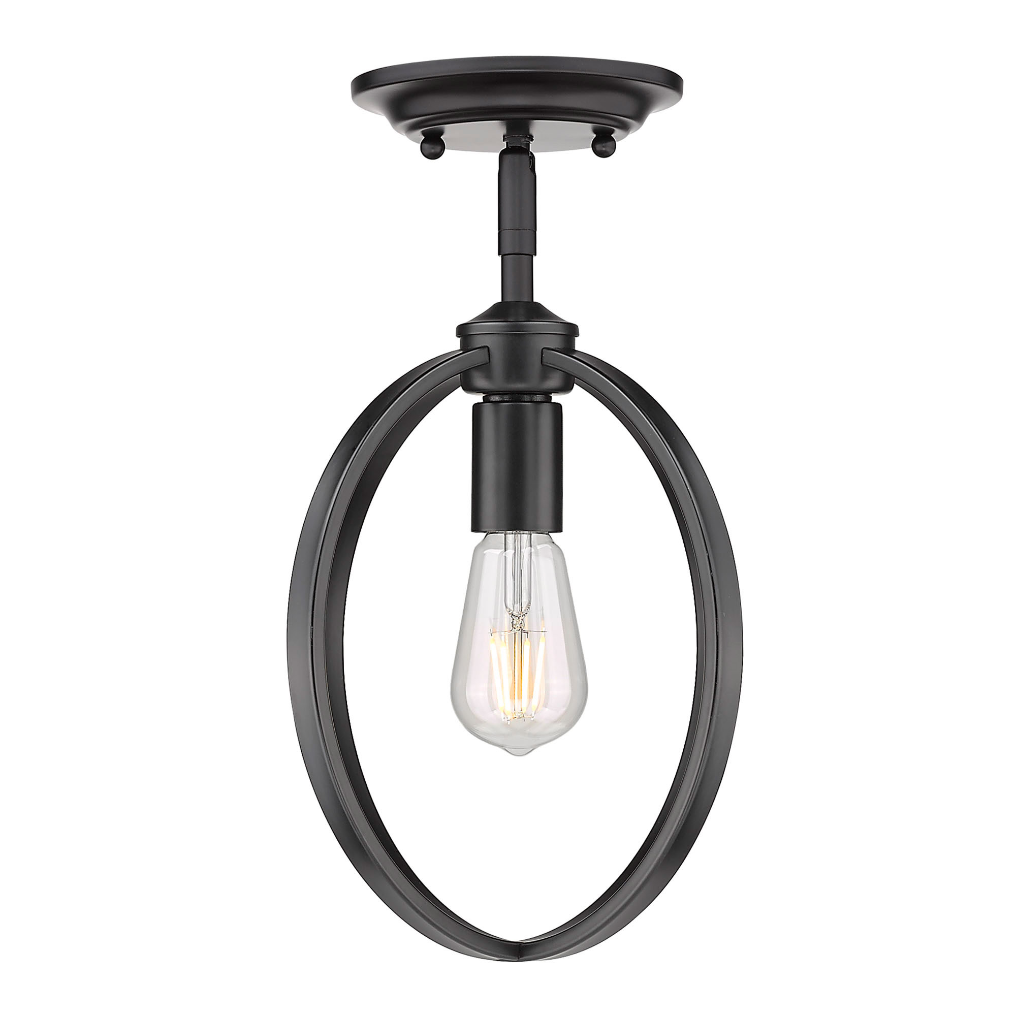 Item DescriptionThis collection is a transitional and industrial-chic design. Ideal for lofts, farmhouses and contemporary interiors, curvaceous arms sit inside simple round frames. The collection offers an extensive line of ceiling fixtures. The optional shades shield the exposed bulb of these elemental fixtures. This 1-Light fixture is damp rated and may be mounted close-to-ceiling.Features: