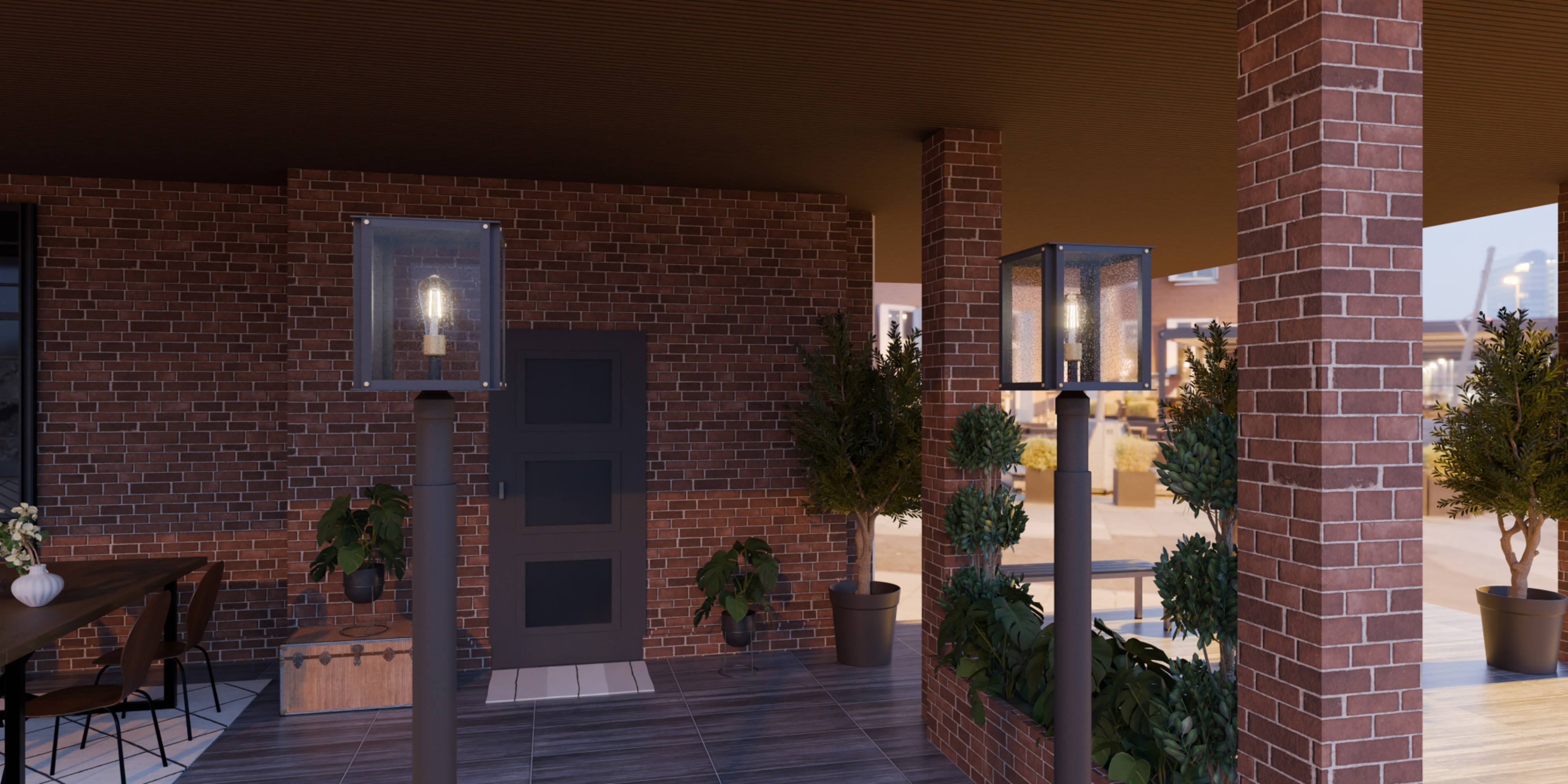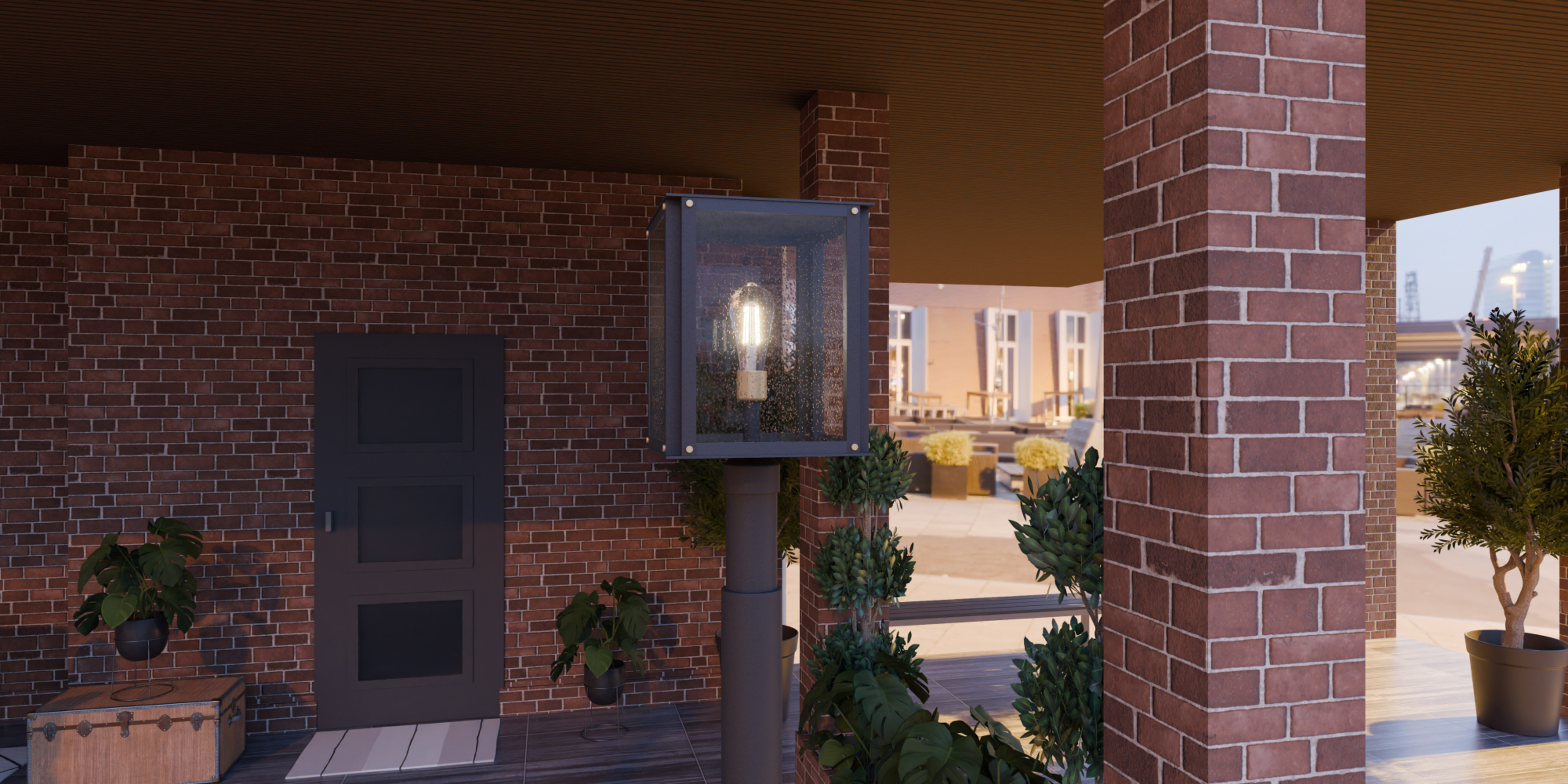 Item DescriptionRobbins outdoor lanterns combine a classic silhouette with industrial style details. Gold decorative accents add a hint of luster to the metal frame, while clear seedy glass panels maximize illumination and intrigue. Robbins is available as a post lantern or in multiple sizes of wall light, perfect for illuminating a front porch or landscape.