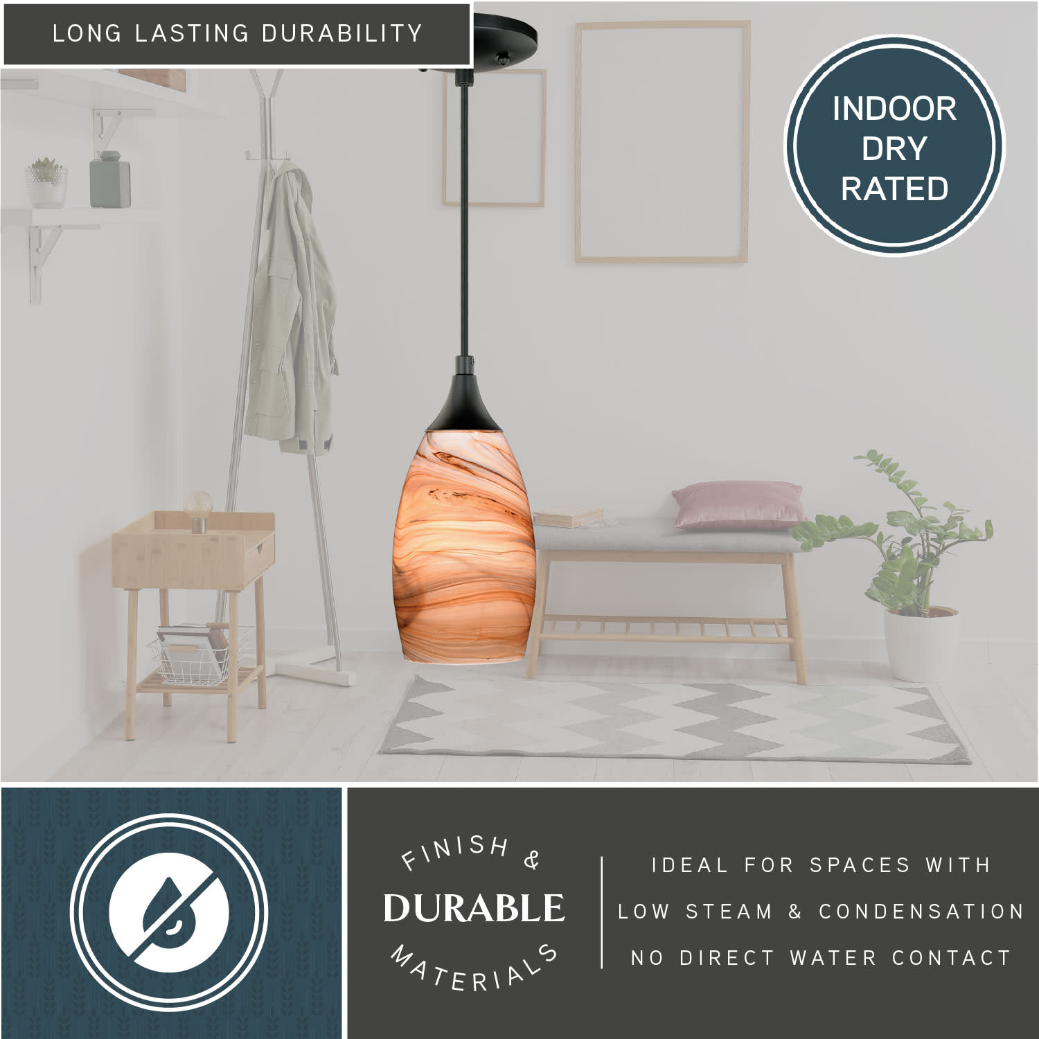 - Designed to cast a soft ambient light over a wide area