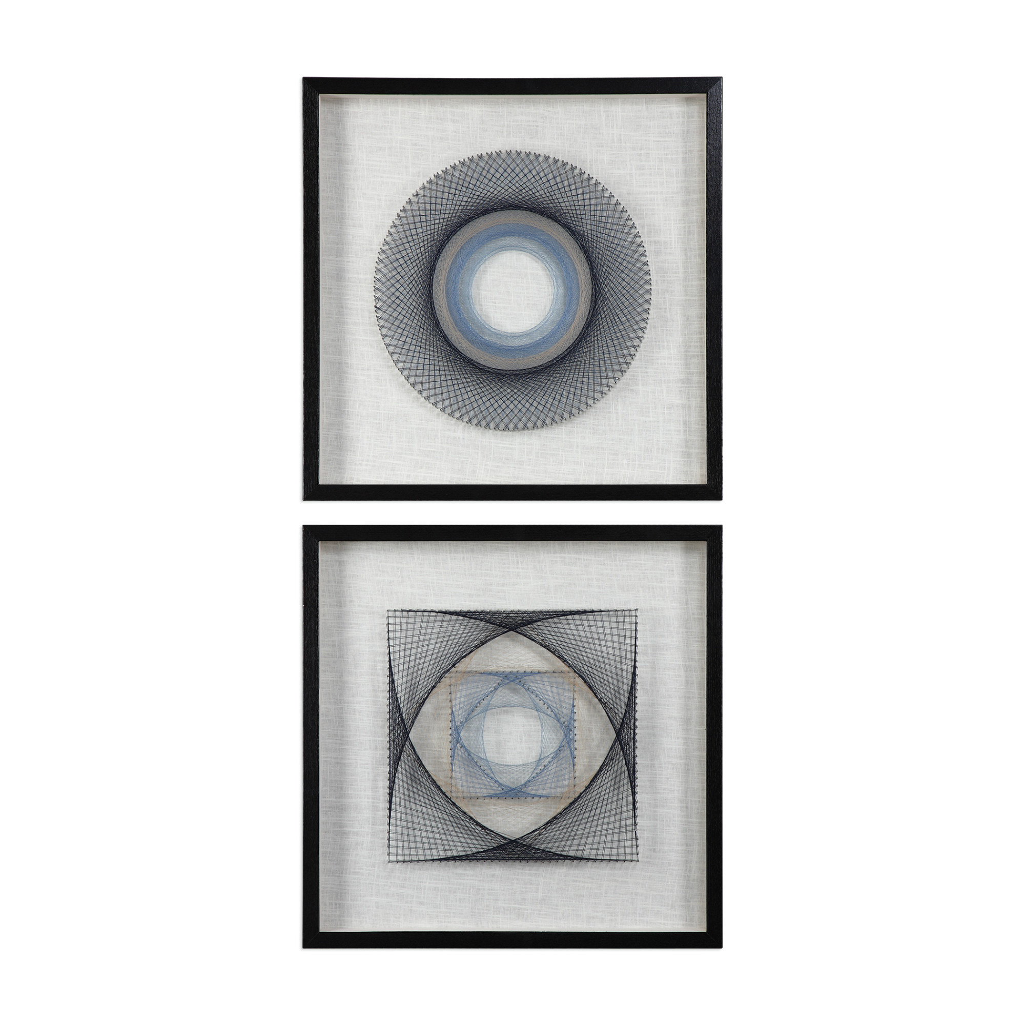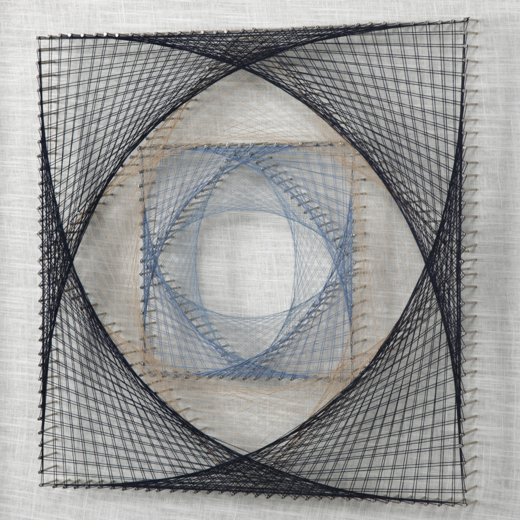 - Hand threaded, three dimensional string art
