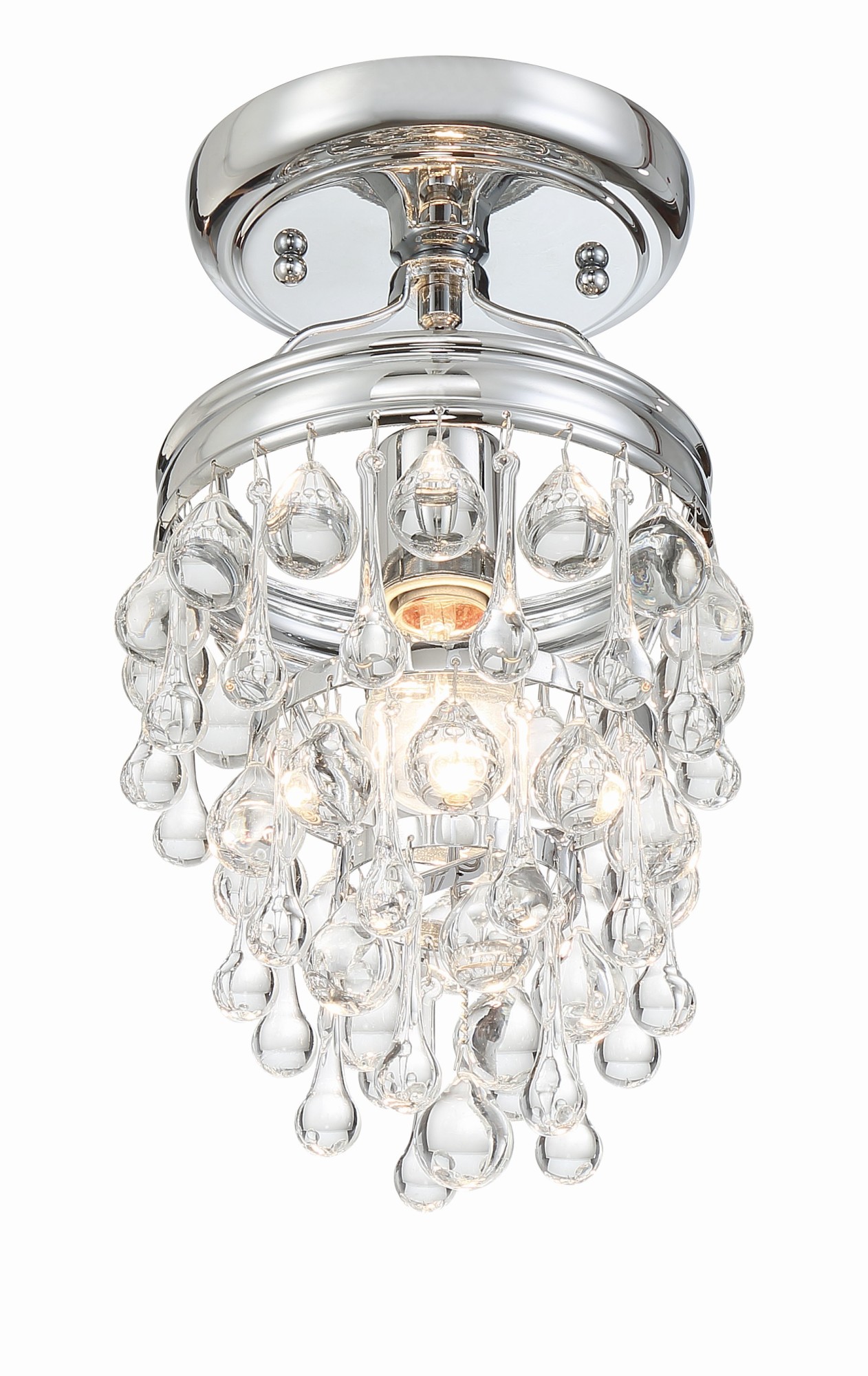 - Light is diffused by clear hanging crystals