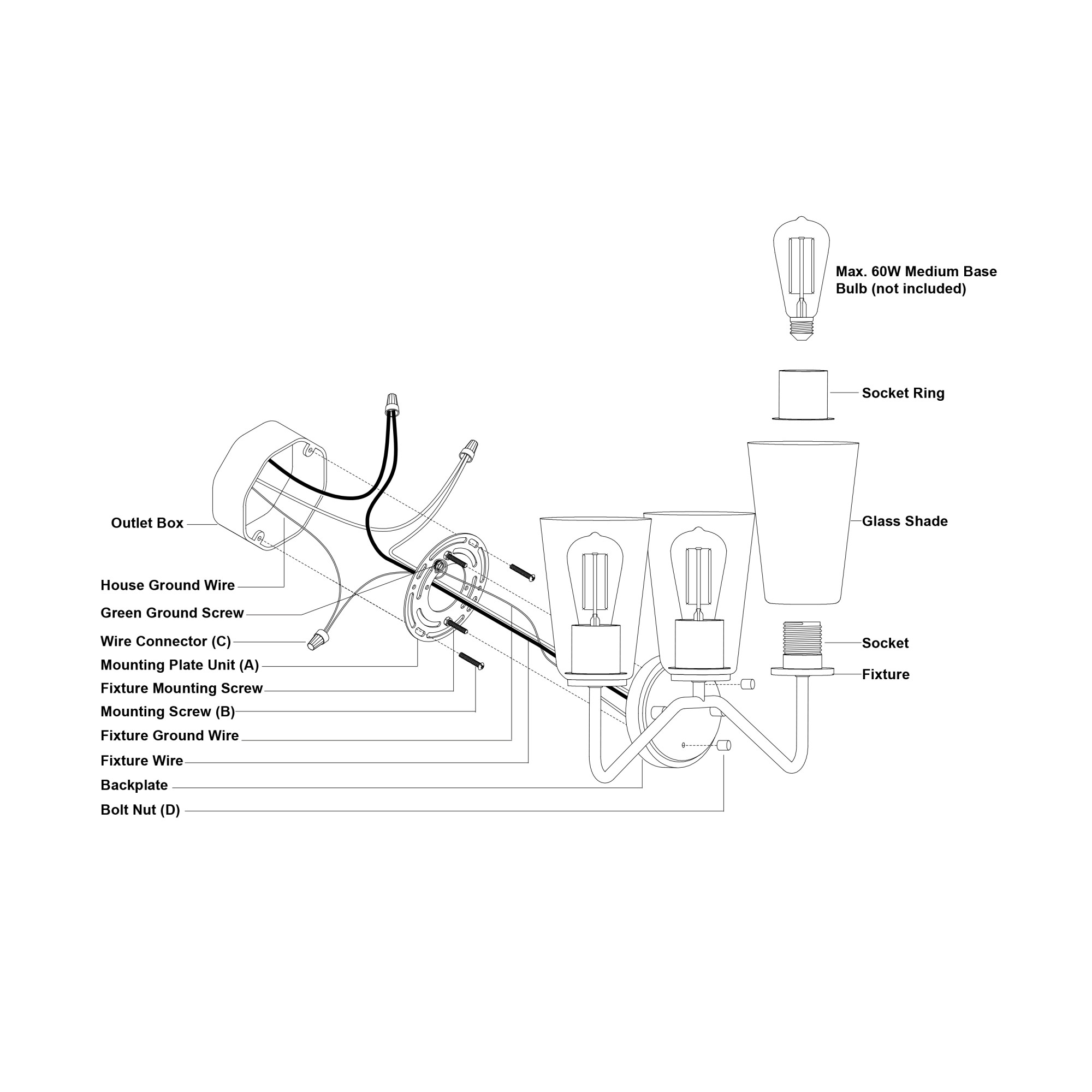 - Requires (3) medium (E26) 60 watt bulbs (not included)