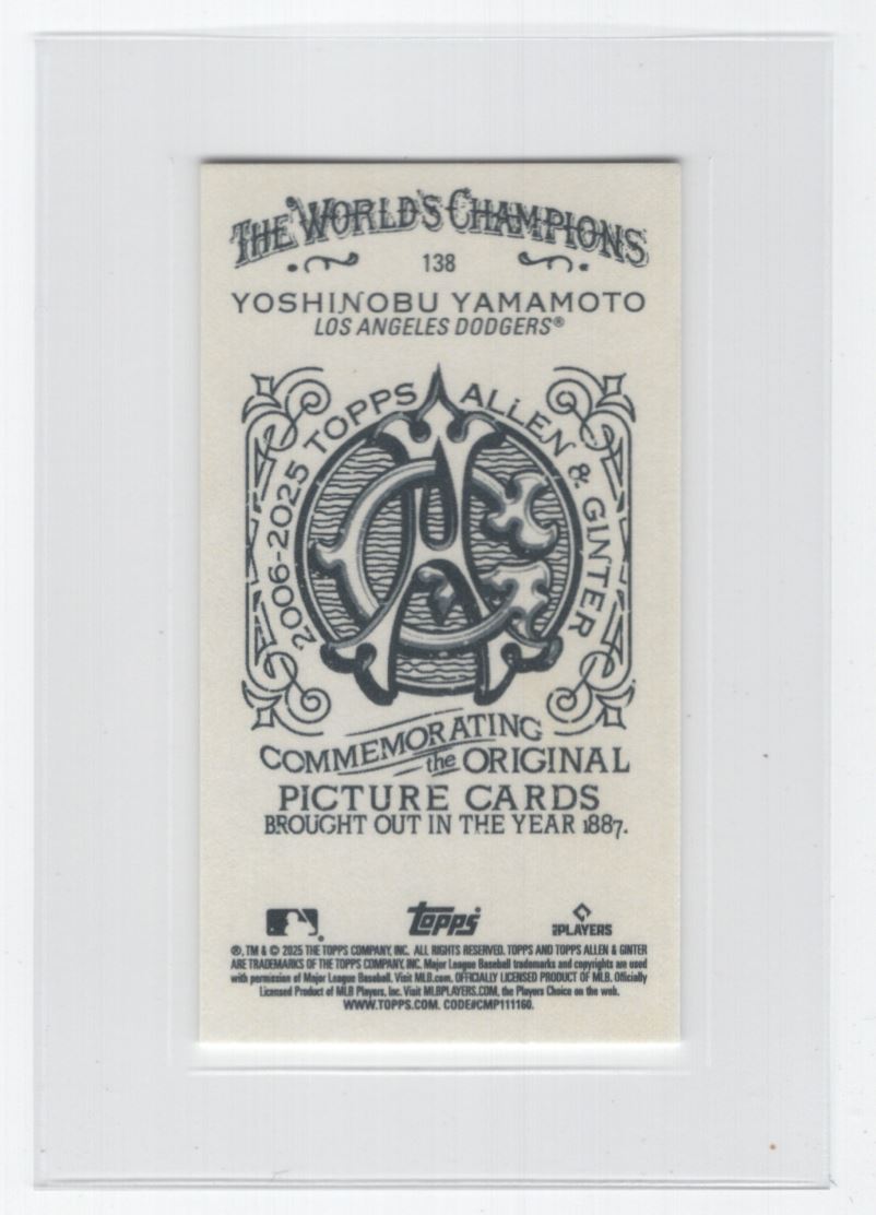 #138 2025 Topps Allen & Ginter Mini A&G Back Yoshinobu Yamamoto Los Angeles