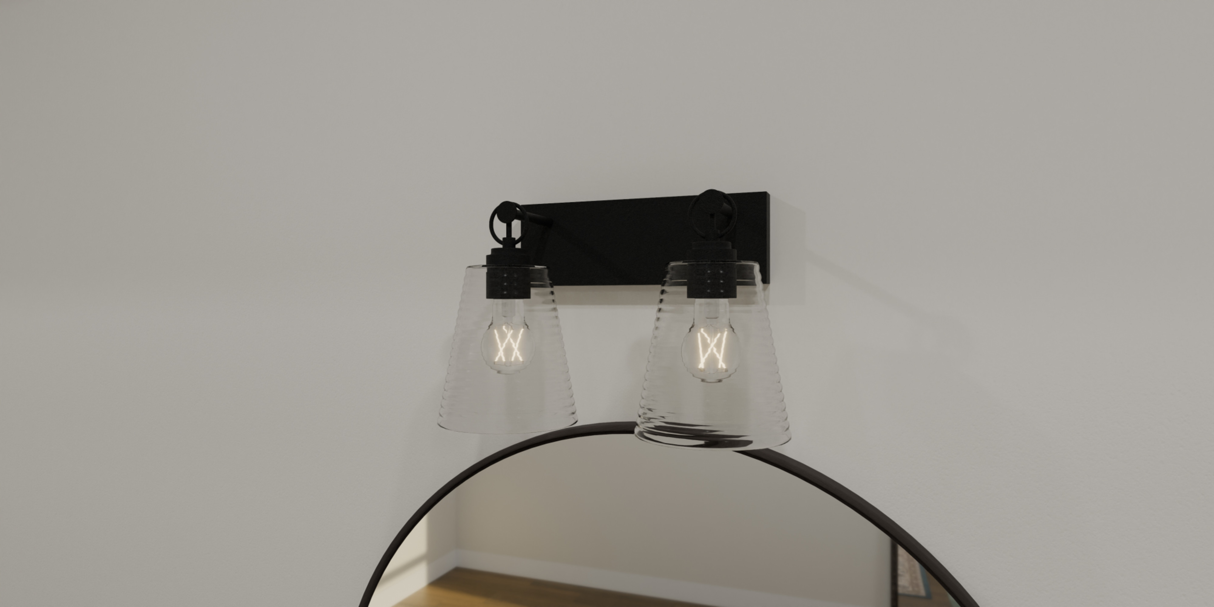 - Includes clear, ribbed glass shades