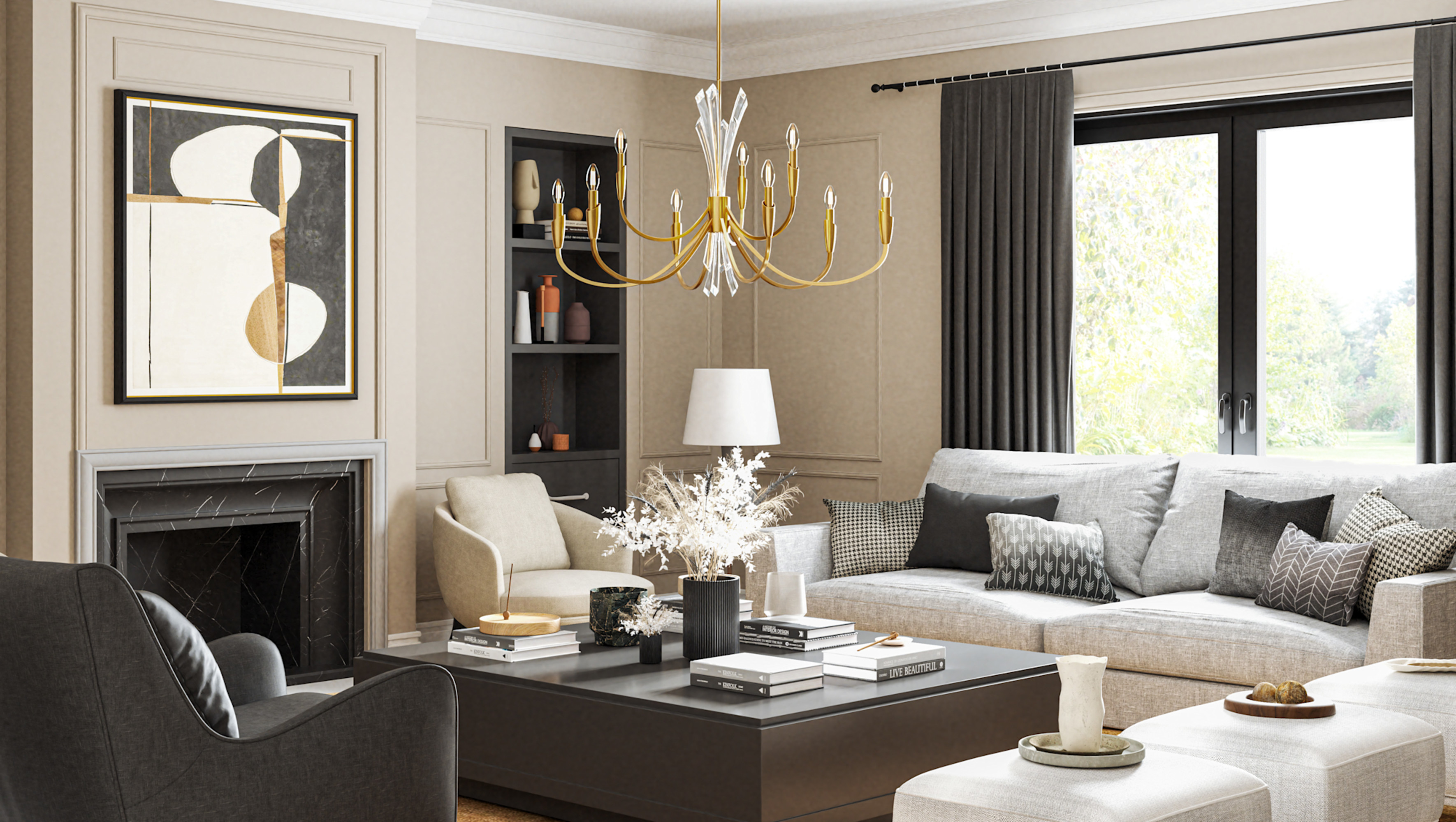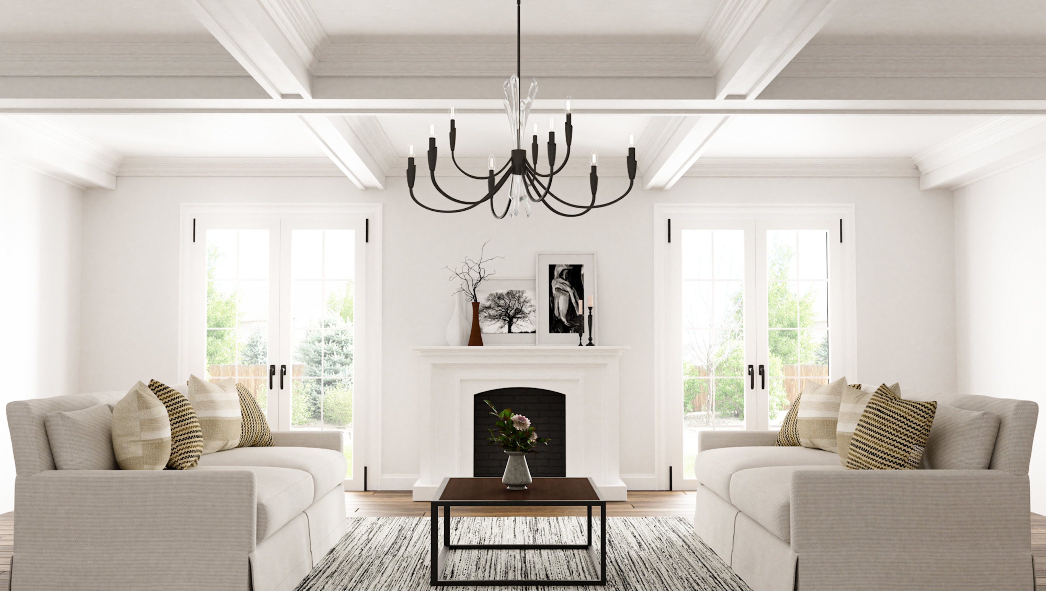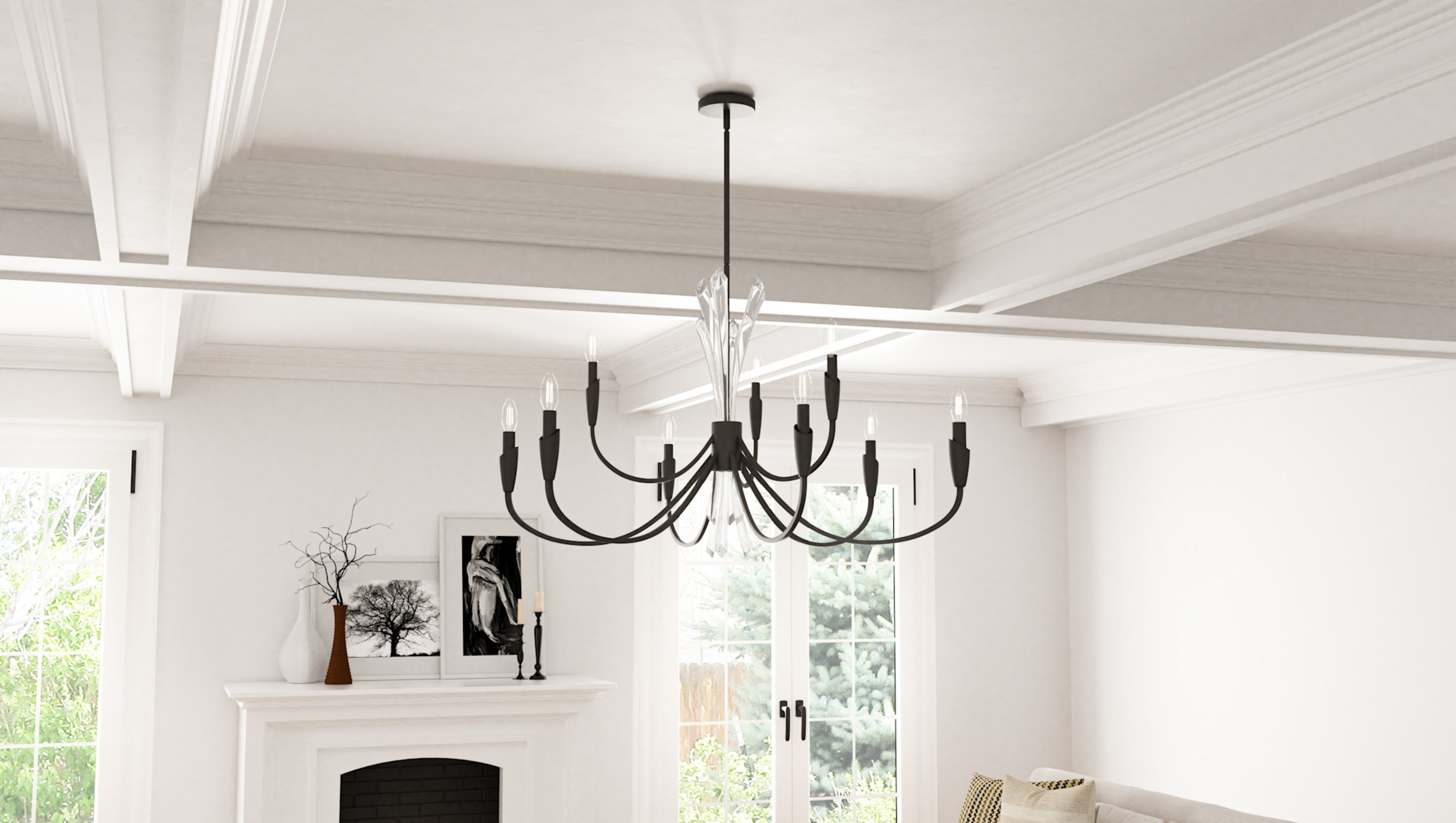 - Fixture includes (2) 12" and (2) 6" downrods