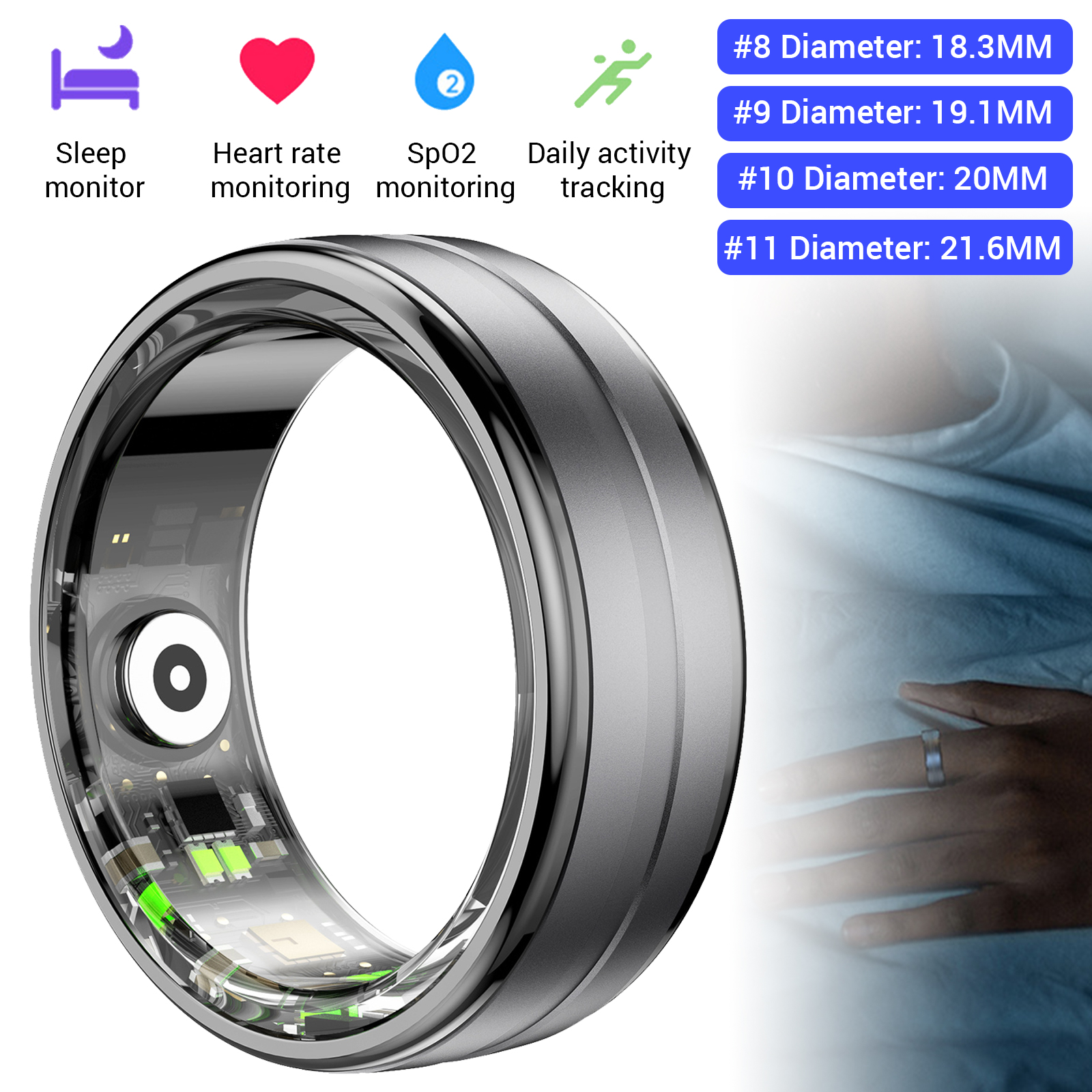 - Comprehensive Health Tracking: This smart ring monitors steps, distance, calories burned, heart rate, oxygen levels, stress, and sleep patterns, with multiple exercise modes to choose from for a complete health overview.
