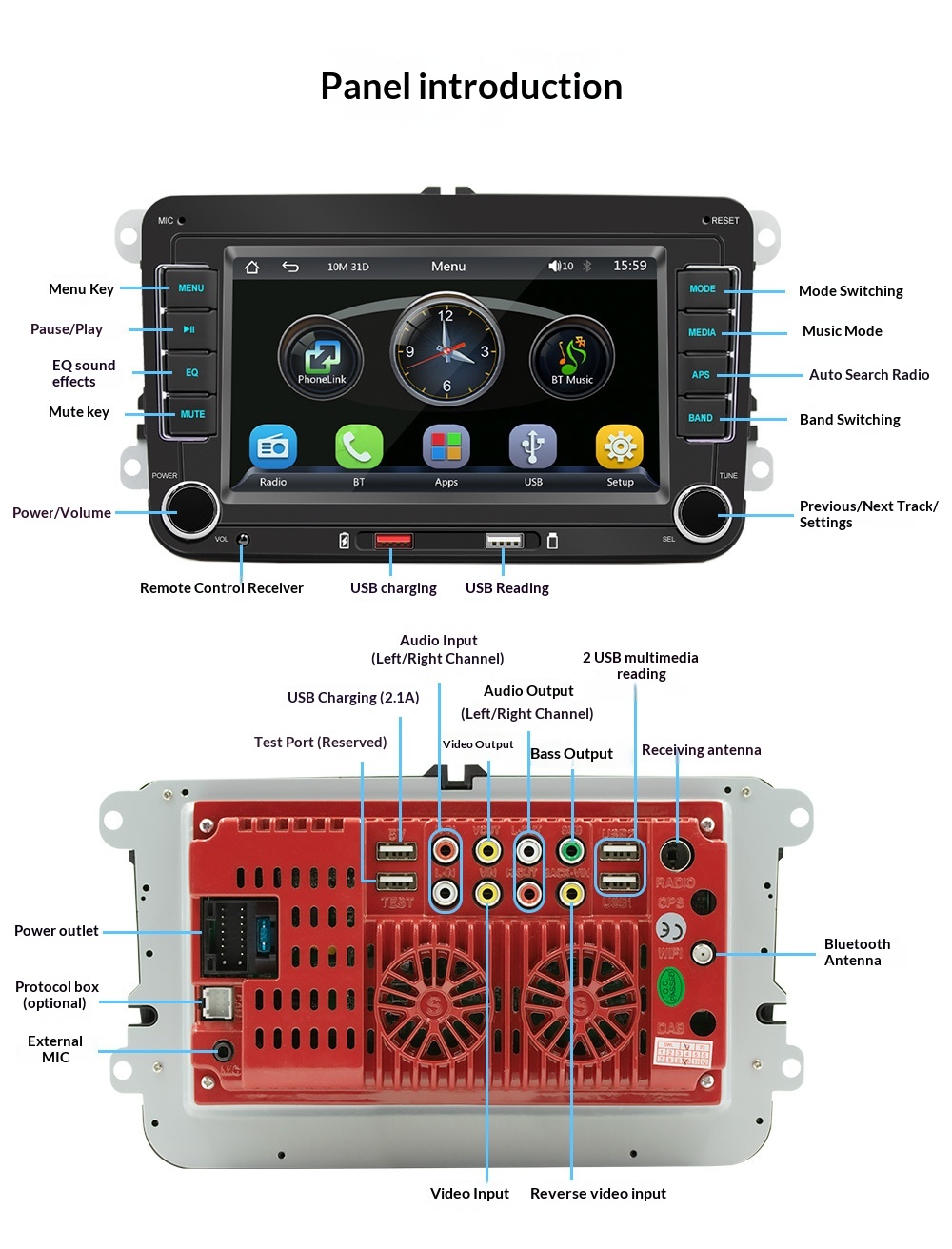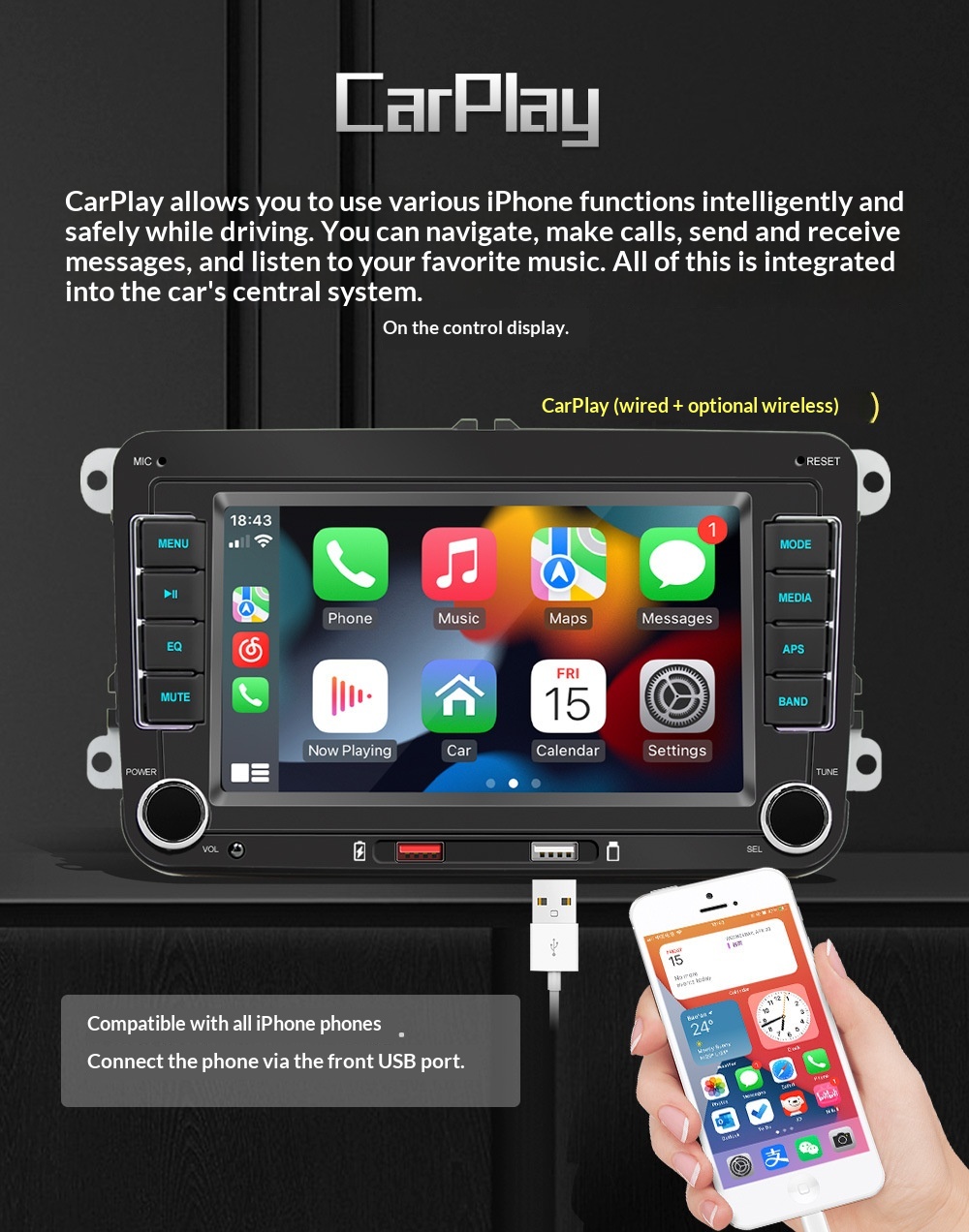 Additional Features: CarPlay, positive and negative terminal wiring protection