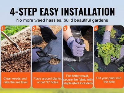 Don't let weeds ruin your garden anymore! With just 4 simple steps, you can enjoy a weed-free garden: ① Clear weeds and rake the soil level. ② Place around plants, or cut "X" or "O" holes. ③ Secure the fabric for better result. ④ Put your plant into the hole.