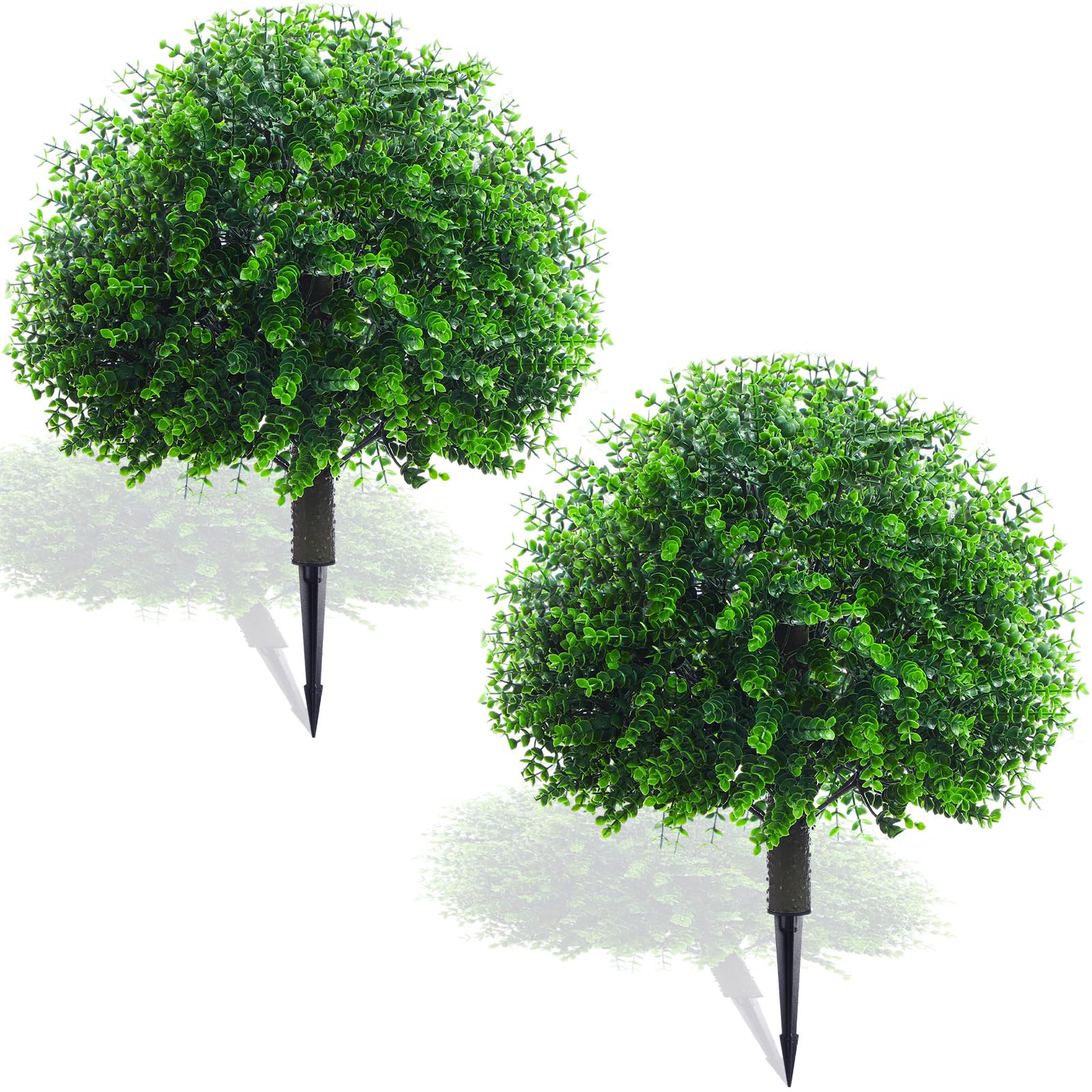 Yunlly 2 Pcs 18 Inch Artificial Boxwood Ball Topiary Tree Fake Outdoor Green