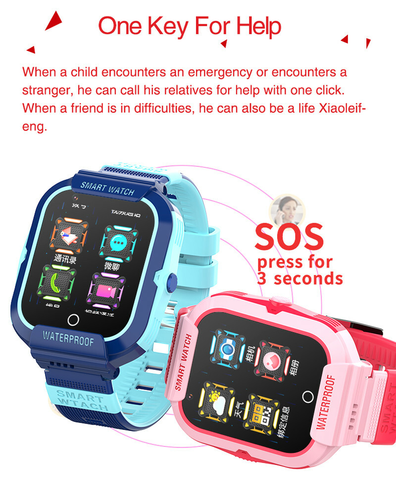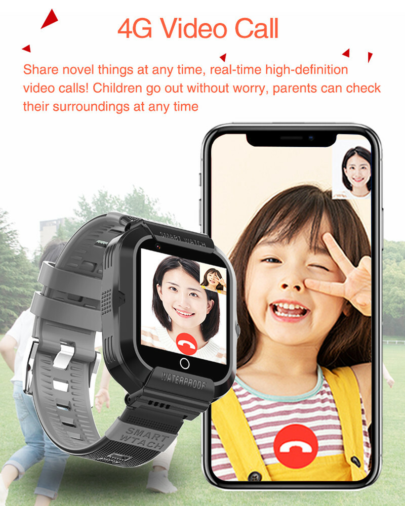 【4G Kids Smartwatch】: the smartwatch kids 4G has all functions you need: Face-talk (video calling), wifi LBS GPS Tracker, Voice chat, Texts, Anti-lost, HD Camera, Historical tracker, Safe zones, SOS, alarm clock, etc.