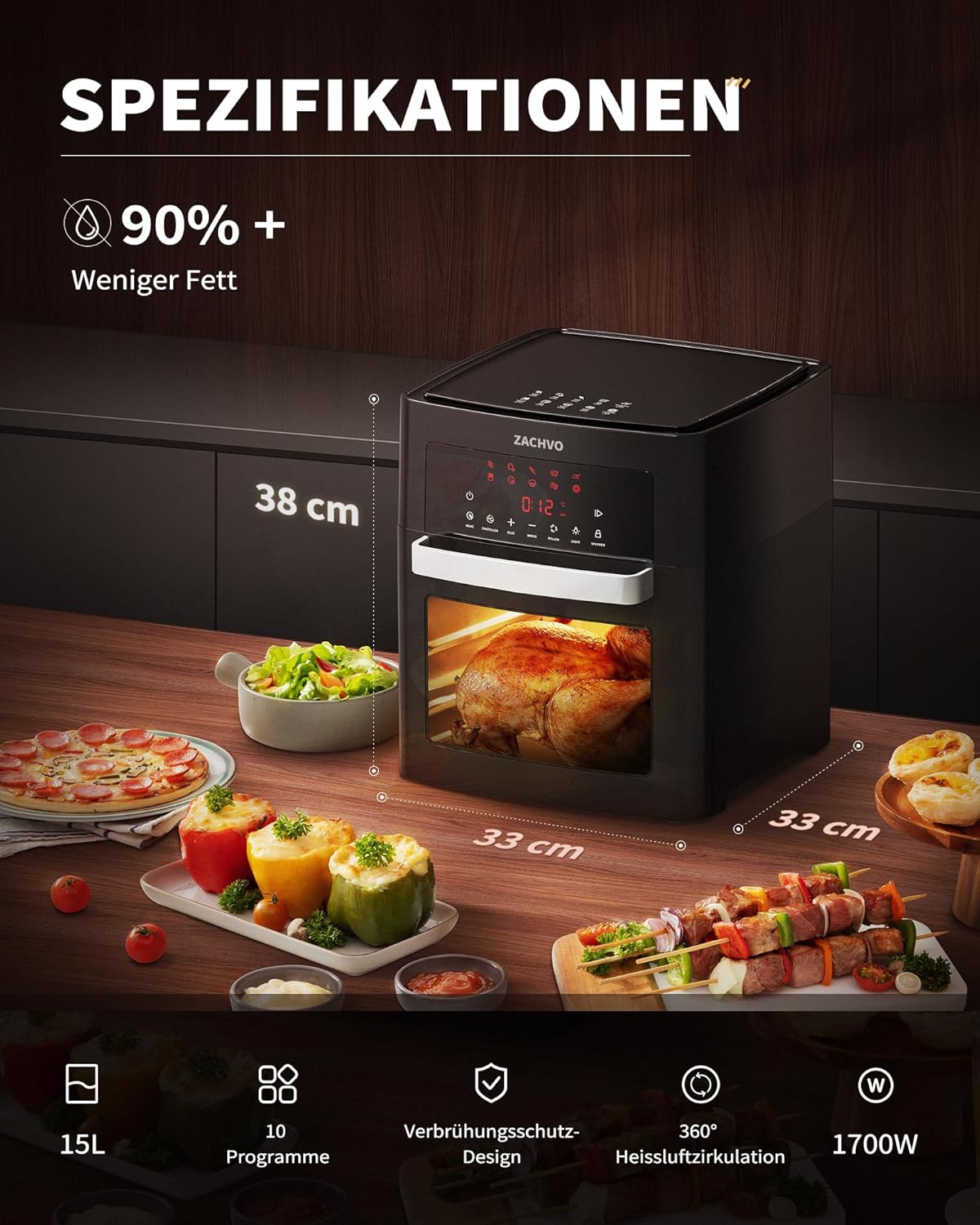 Fritteuse ZACHVO Airfryer XXL 10 Programme 1700 W 15 l LCD