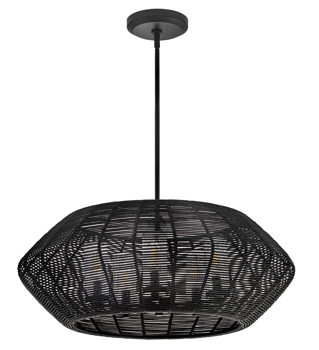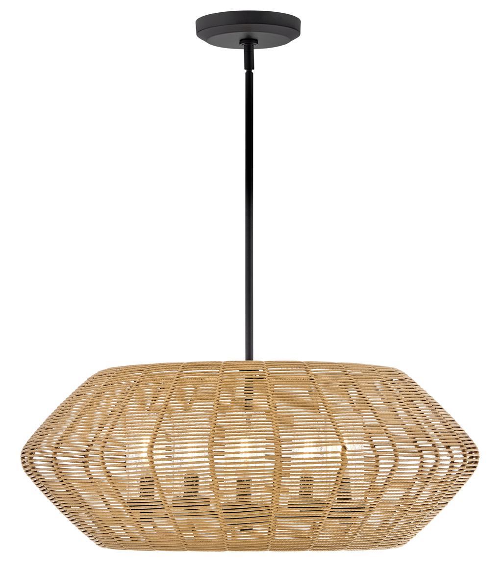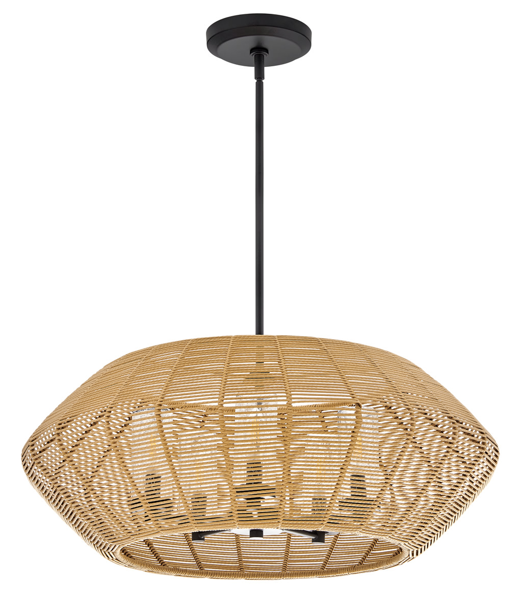 Luca's coastal vibe is permeated with a slightly exotic edge. The bold silhouette showcases a robust, weather-resistant, woven drum shade and candelabra lamps enclosed in clear, seedy glass for plenty of functional light. Offered in a variety of finish options. Luca is part of the Lisa McDennon Collection.