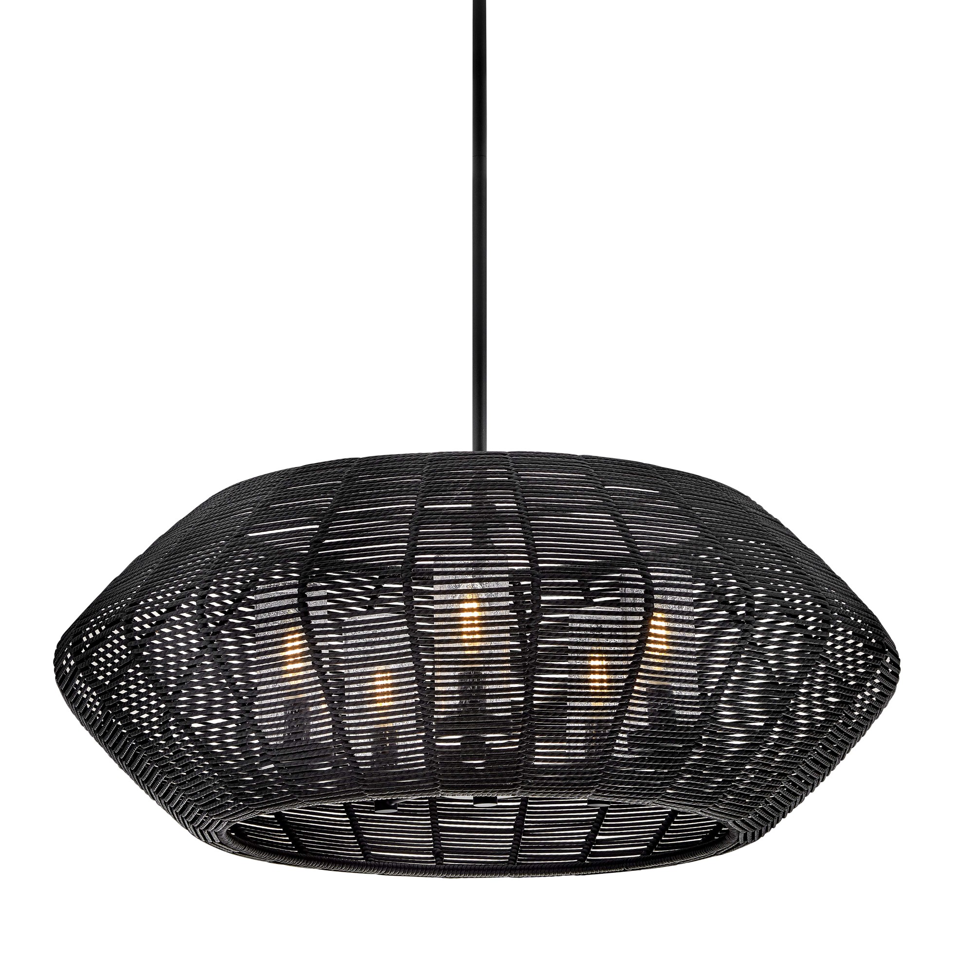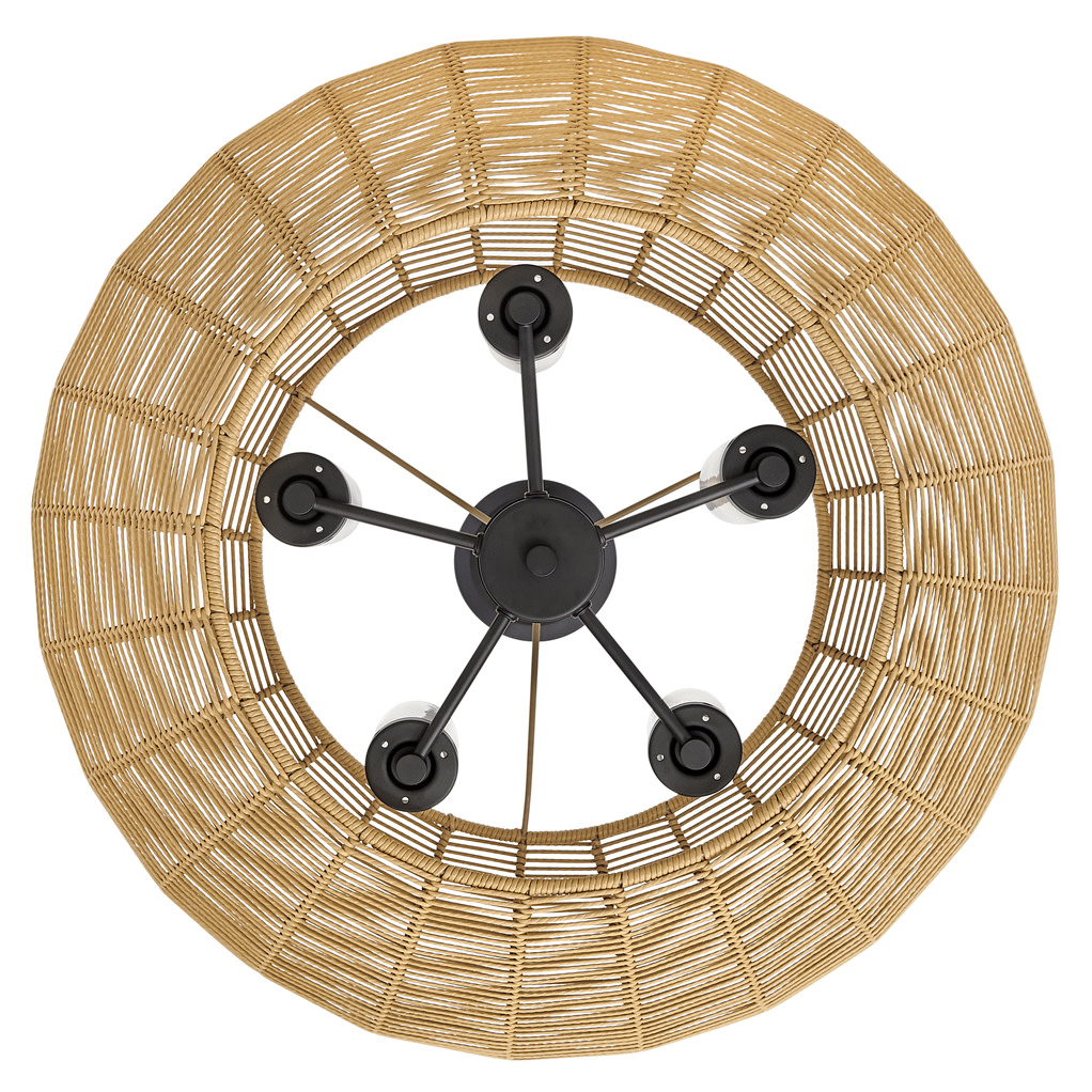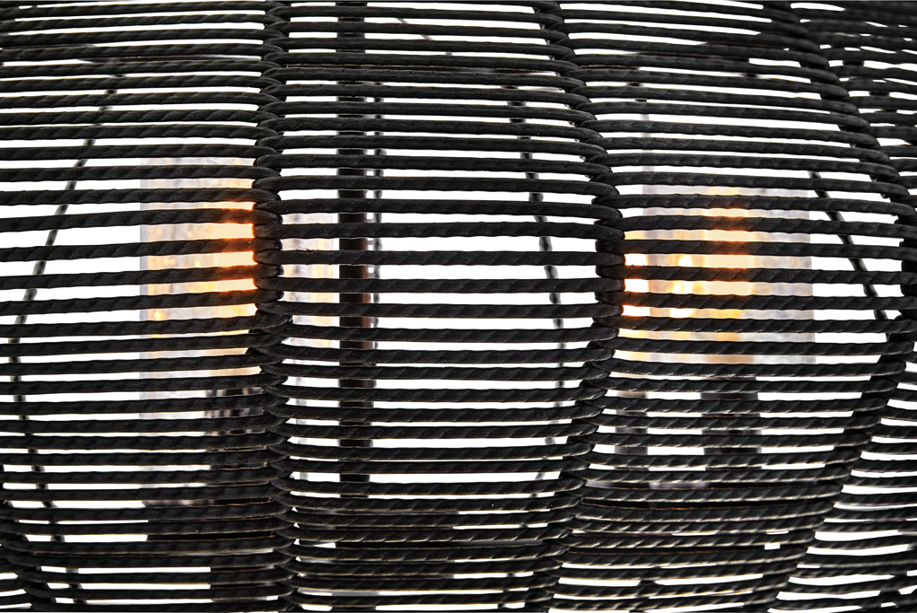 Luca's coastal vibe is permeated with a slightly exotic edge. The bold silhouette showcases a robust, weather-resistant, woven drum shade and candelabra lamps enclosed in clear, seedy glass for plenty of functional light. Offered in a variety of finish options. Luca is part of the Lisa McDennon Collection.