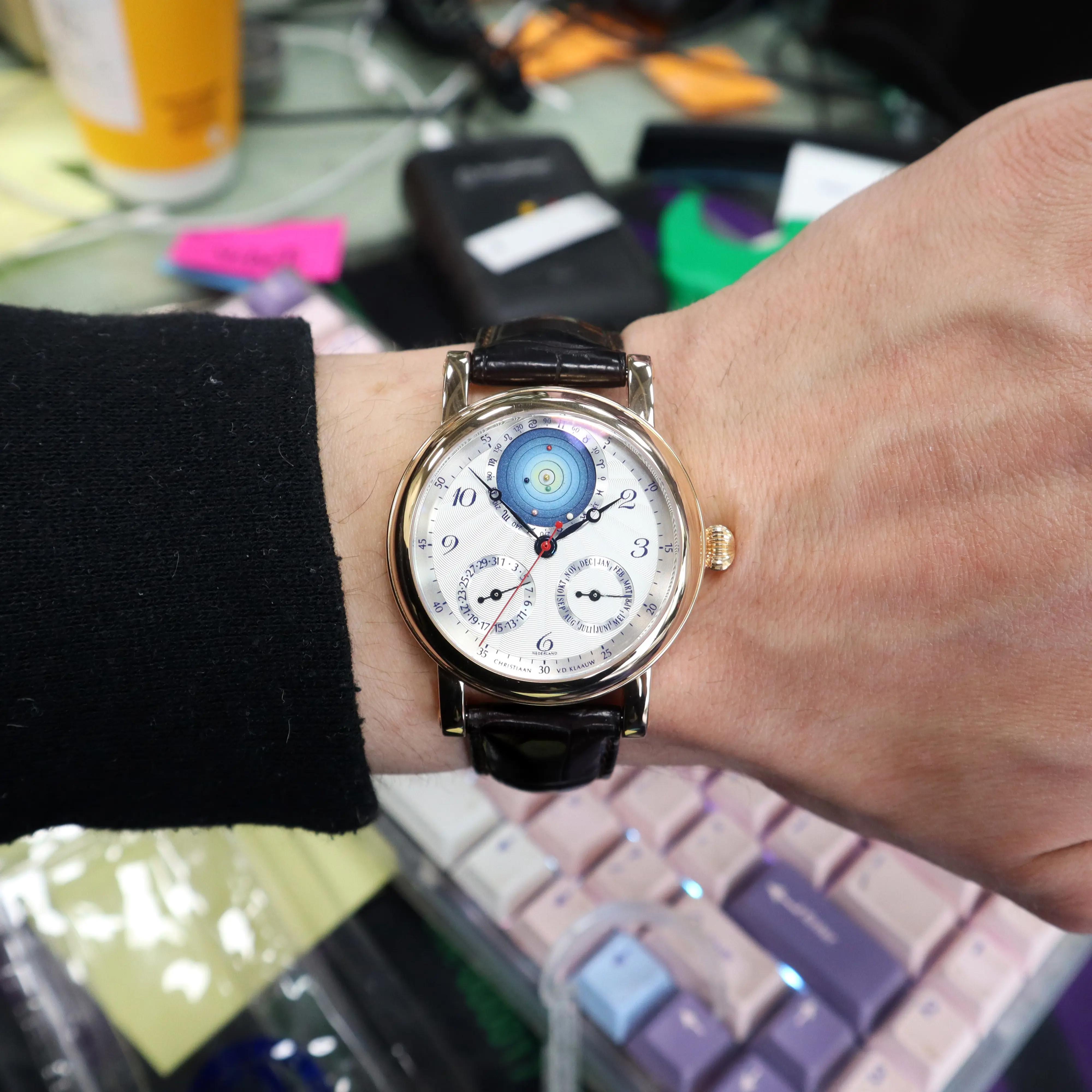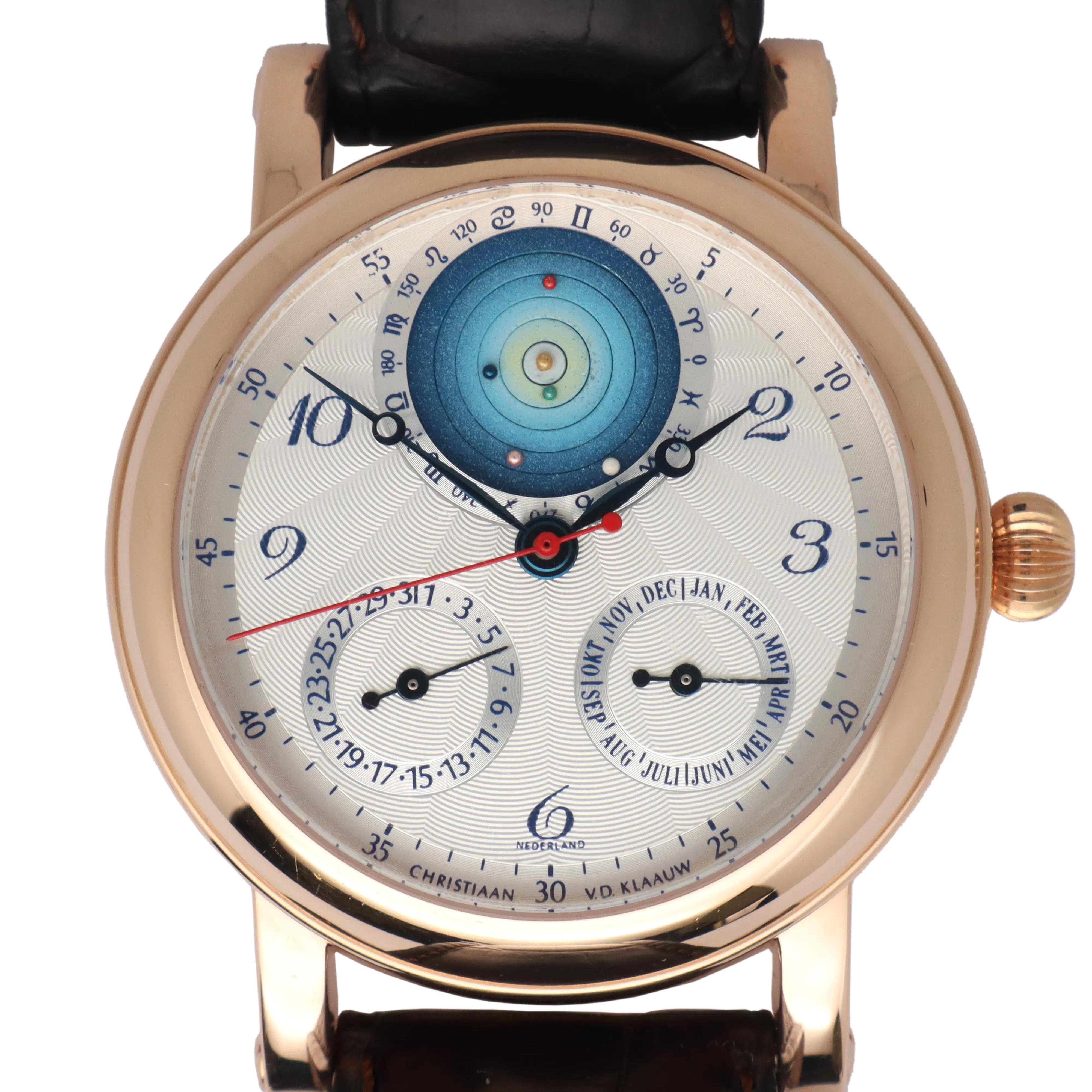 Christiaan van der Klaauw 18K Yellow Gold Planetarium Aperture Silver Dial Watch