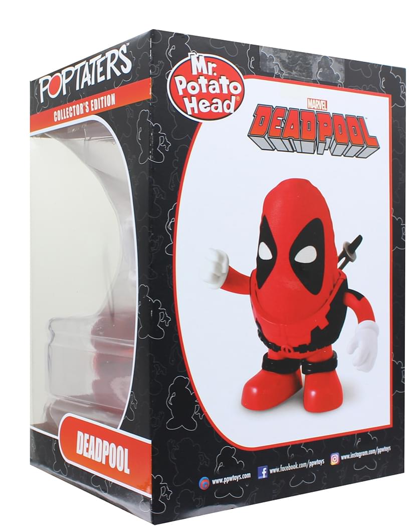 It's all your favorite Marvel characters with new PopTater figures! Standing 6-inches tall, this Mr. Potato Head depicts Marvel's Merc with a Mouth, Deadpool. Comes complete with a variety of removable parts and pieces. Mix and match parts with other Marvel PopTaters (sold separately) to create your own Marvel character! Collect them all! Officially licensed.