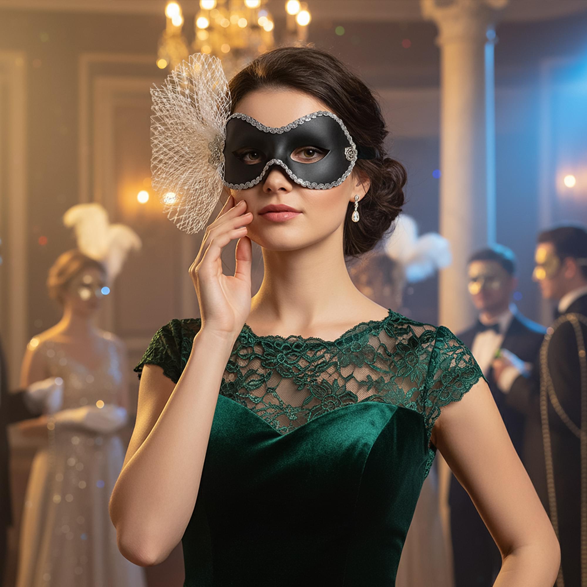 This facepiece is filled with drama, with intrigue and mystery! It has something of a performance with its flourish of tulle and its theatrical metal brooch. It sparkles with sequins and allures with black so why not get yourself the classy and timeless Black and Silver Masquerade Facepiece!