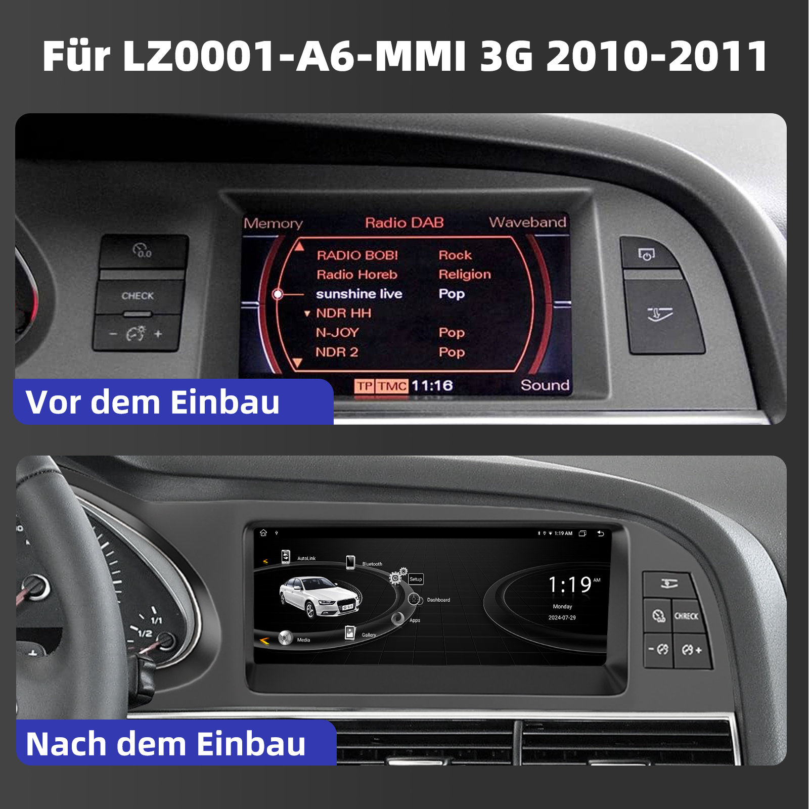 Für Audi A6 C6 4F MMI 3G 2010-2012