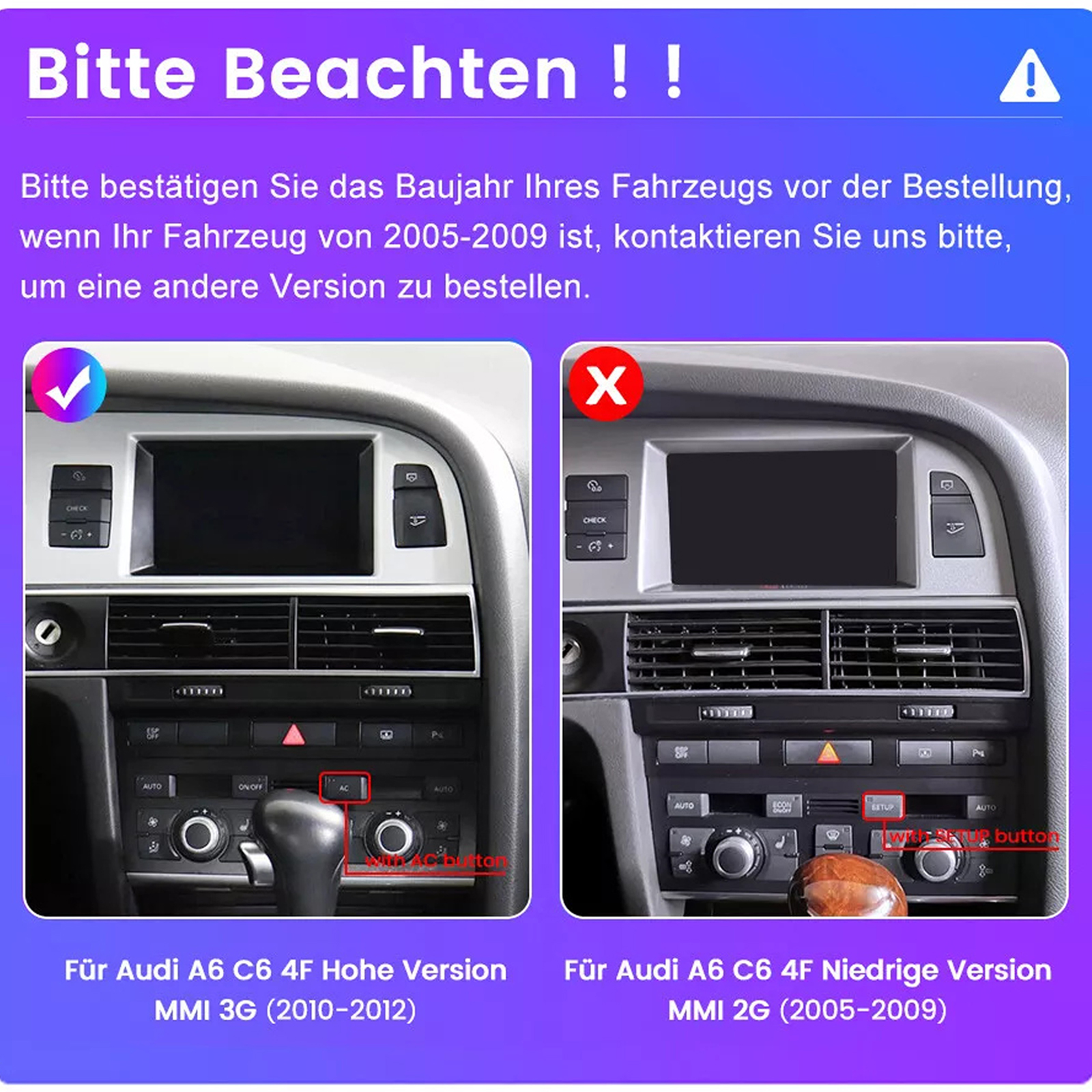 !!! Bitte bestätigen Sie Ihr Auto-System ist MMI 3G, dieses Gerät nicht unterstützen MMI 2G-System.