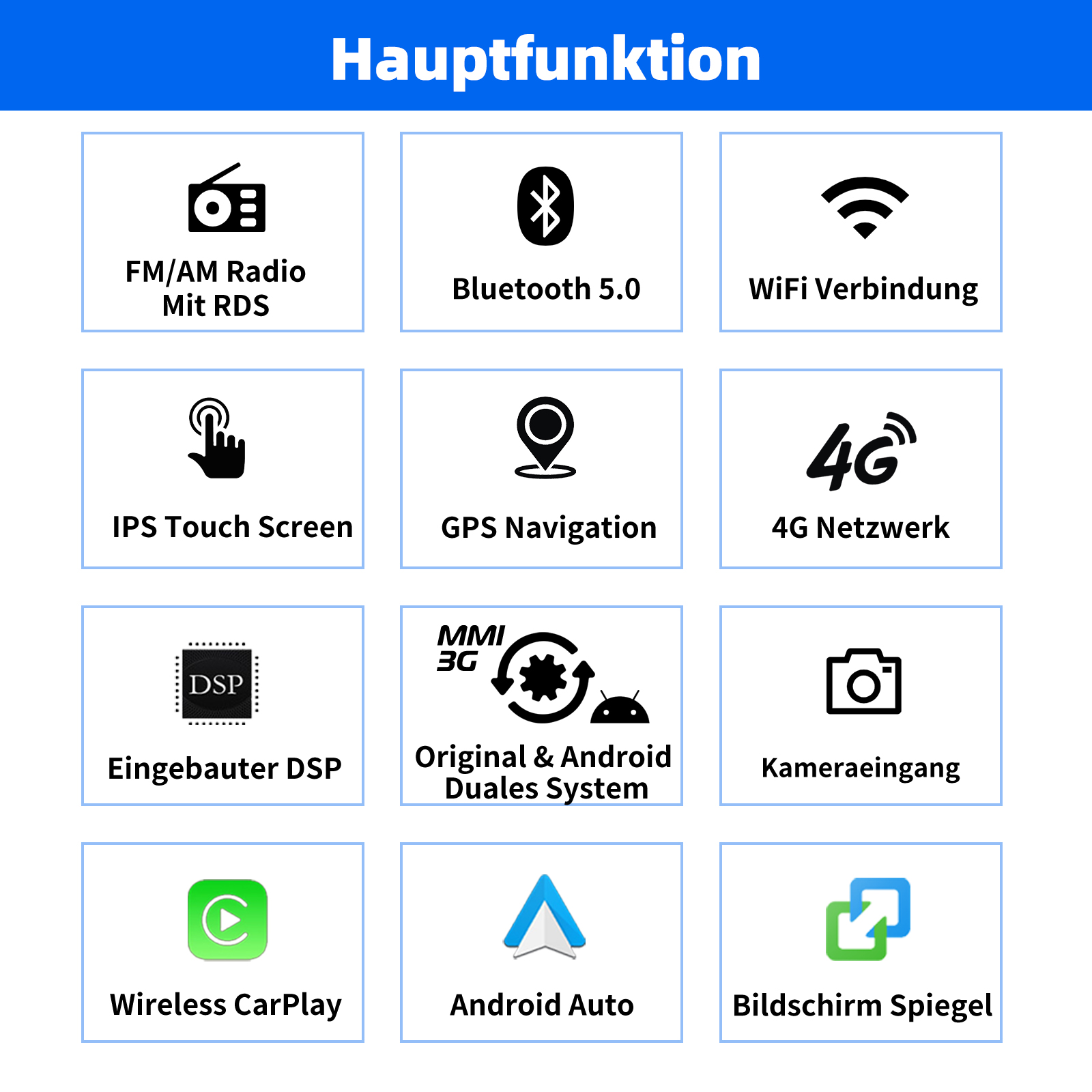- Eingebauter Can-Bus-Decoder, kompatibel mit den meisten Lenkrad-Steuerungsfunktionen und Original-Auto-Idrive-Knopf.