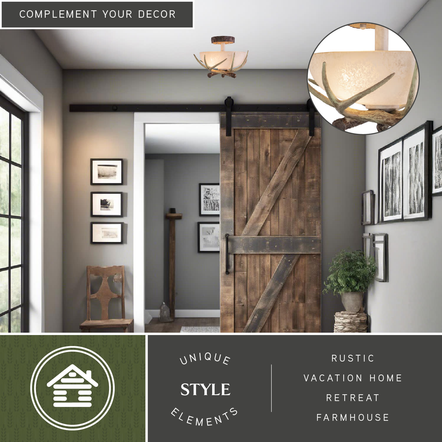- Rustic cabin accents with a warm inviting style